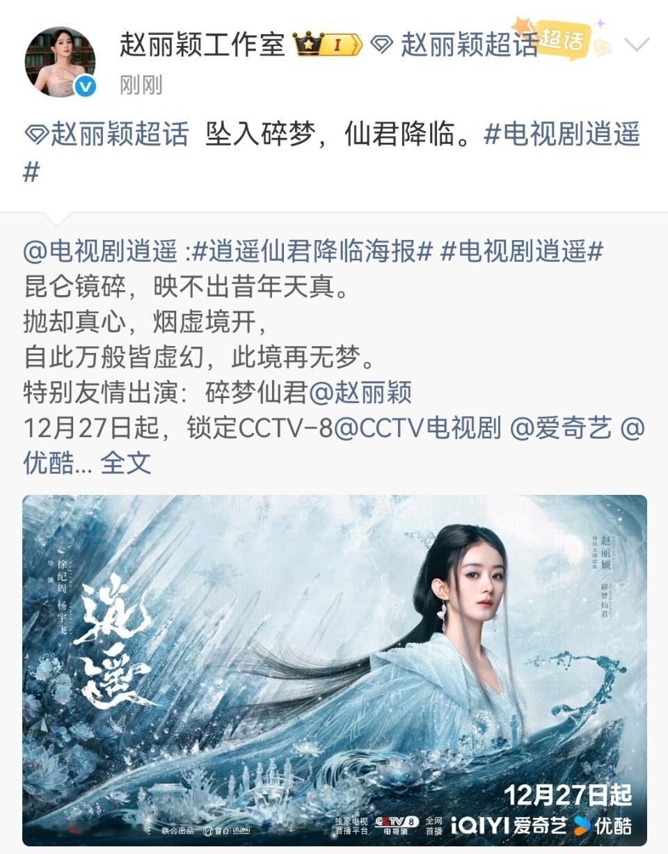 原来《逍遥》是赵丽颖监制的啊!怪不得只是客串一个角色赵丽颖和工作室还特意发微博宣传赵丽颖逍遥剧宣赵丽颖工作室宣传逍遥 赵丽颖逍遥海报