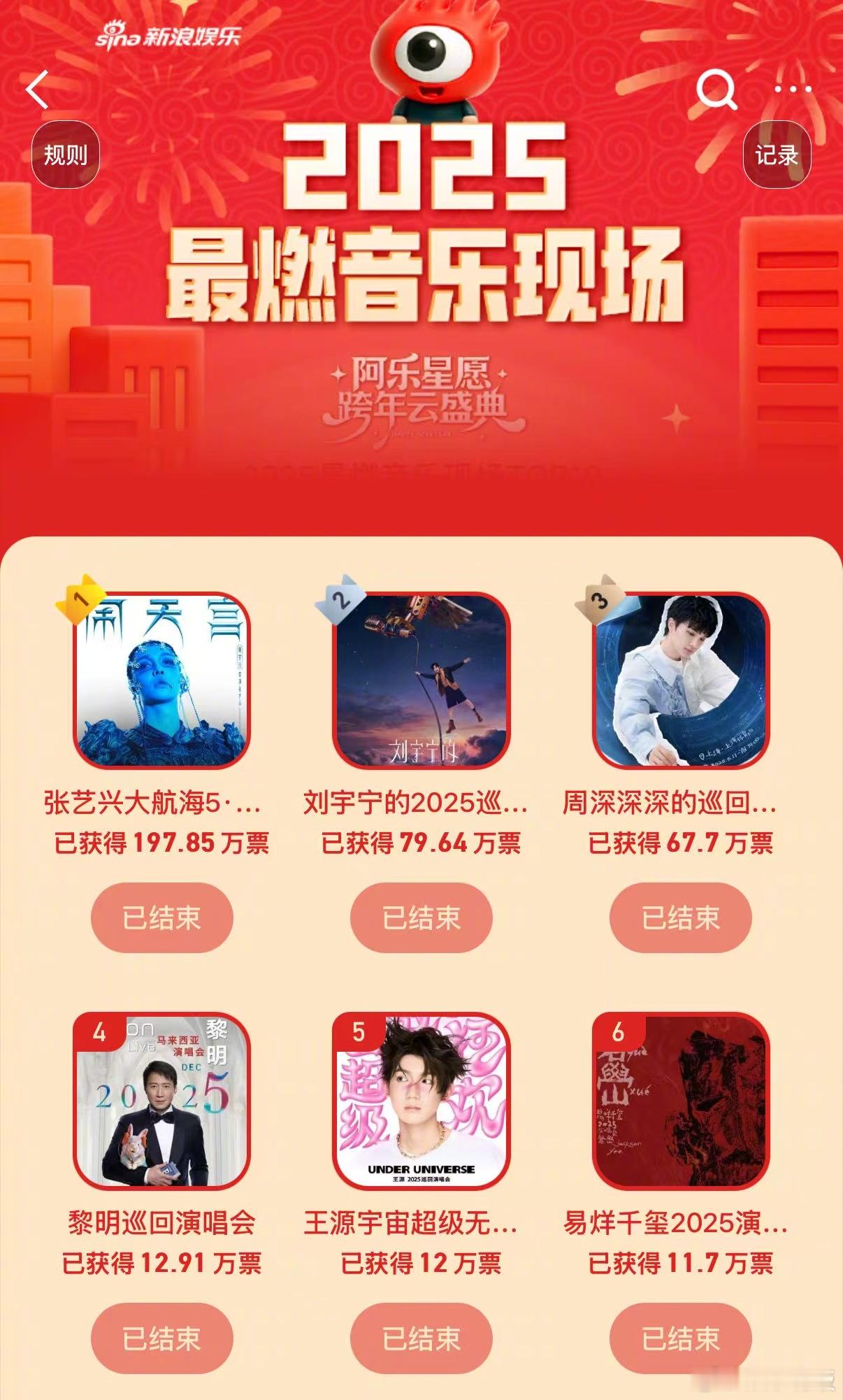 张艺兴大航海巡演2025最燃音乐现场 恭喜「大航海5·闹天宫」巡演荣获“2025最燃音乐现场”,实至名归!每一场都是炸裂舞台、视听盛宴,将国风与未来感完美融合。人气断层领跑,实力是唯一的答案!