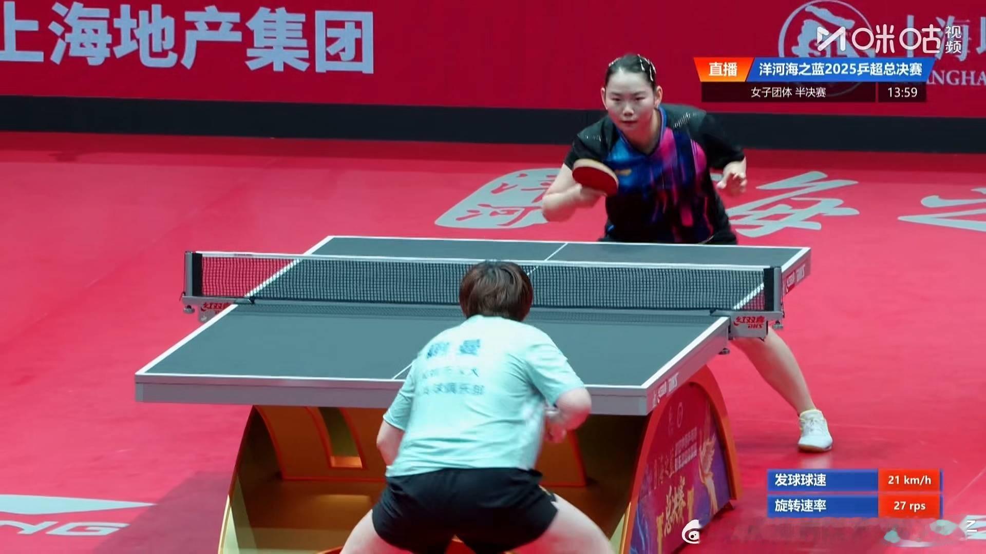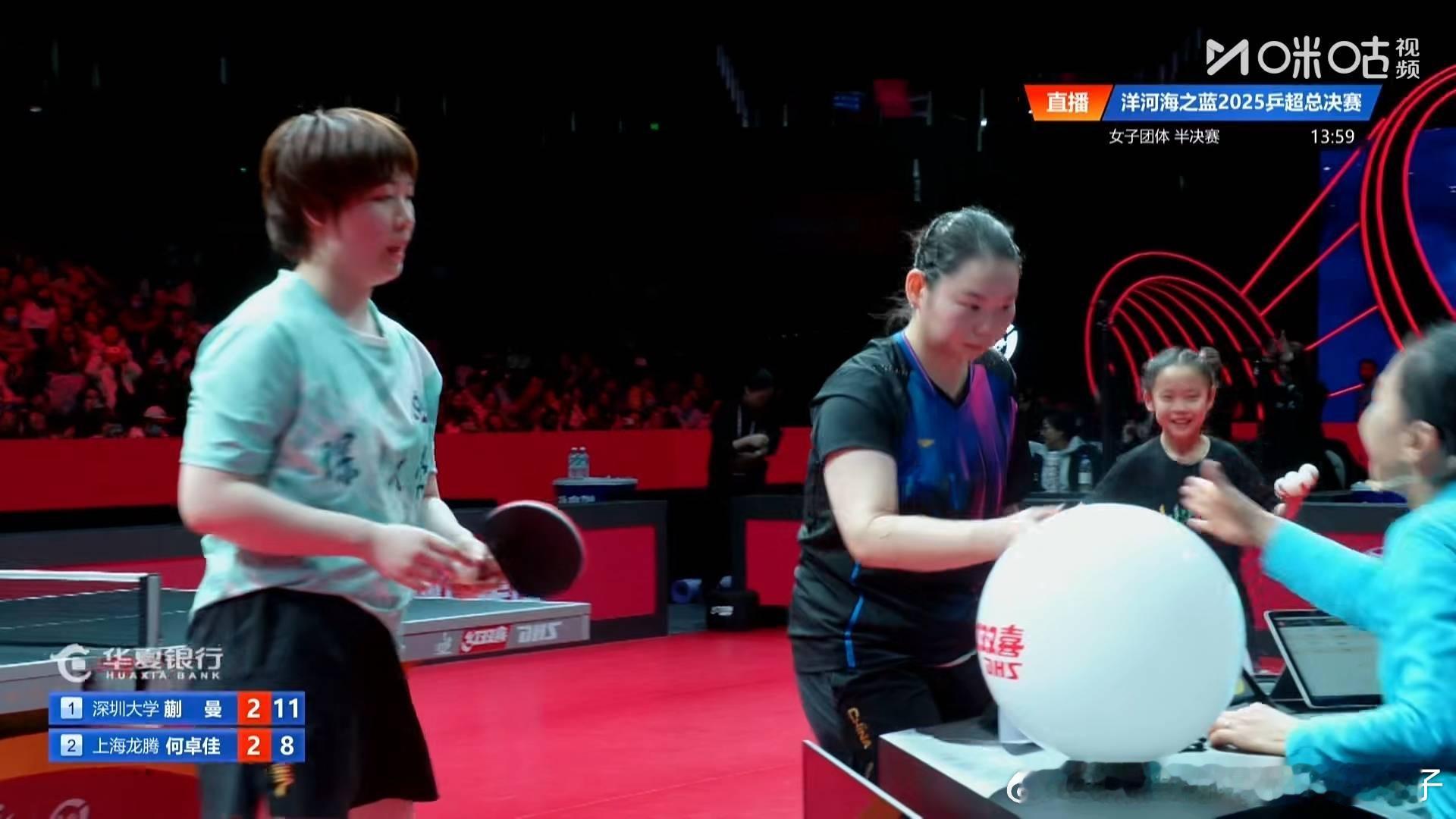 蒯曼3比2何卓佳(9,8,-9,-8,8)决胜盘:平野美宇VS刘炜珊深圳大学二比二上海龙腾2025年乒超联赛女团半决赛