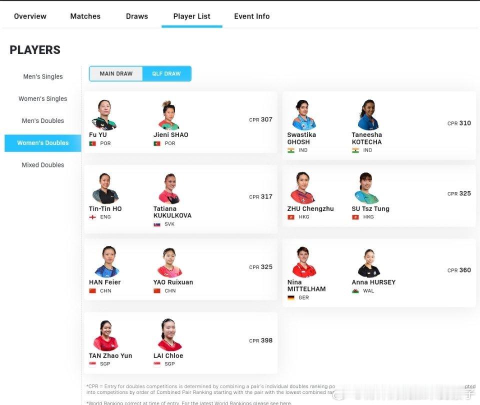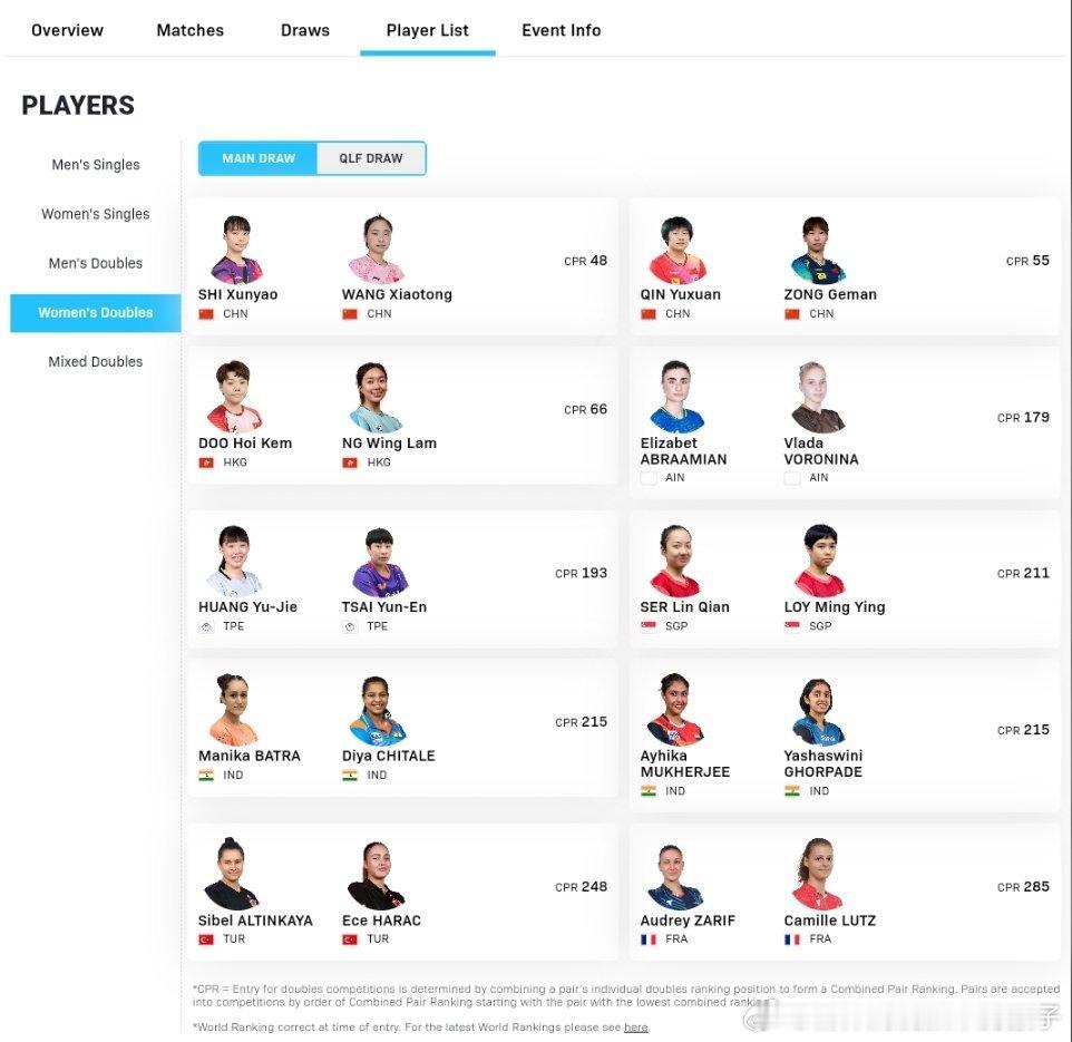 2026WTT马斯喀特常规挑战赛中国队双打报名👀:1月19日-24日男双正赛:林诗栋黄友政、梁靖崑温瑞博女双正赛:石洵瑶王晓彤、覃予萱纵歌曼混双正赛、黄友政石洵瑶、陈垣宇韩菲儿男双资格赛:袁励岑陈垣宇女双资格赛:韩菲儿姚睿轩