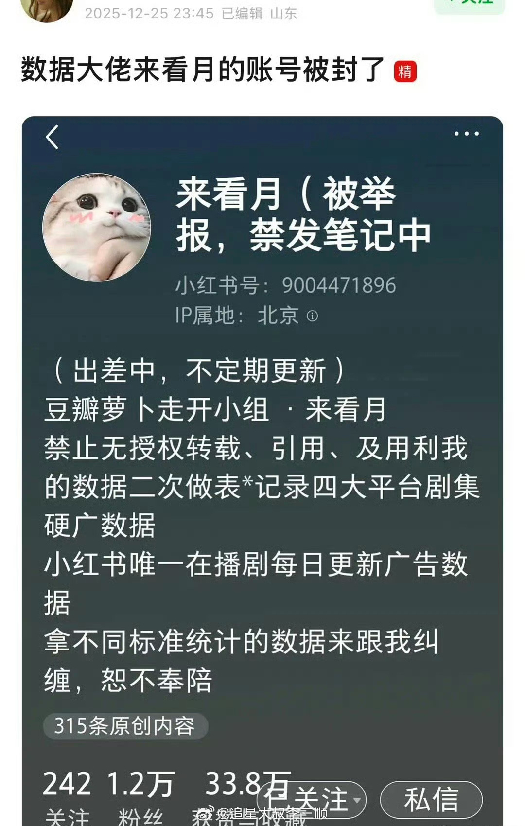 🍠上专门发电视剧广告情况的博主,发的成毅《长安二十四计》全集有广,优酷1史冠,5年冠的帖子被人聚宝了,禁言三天