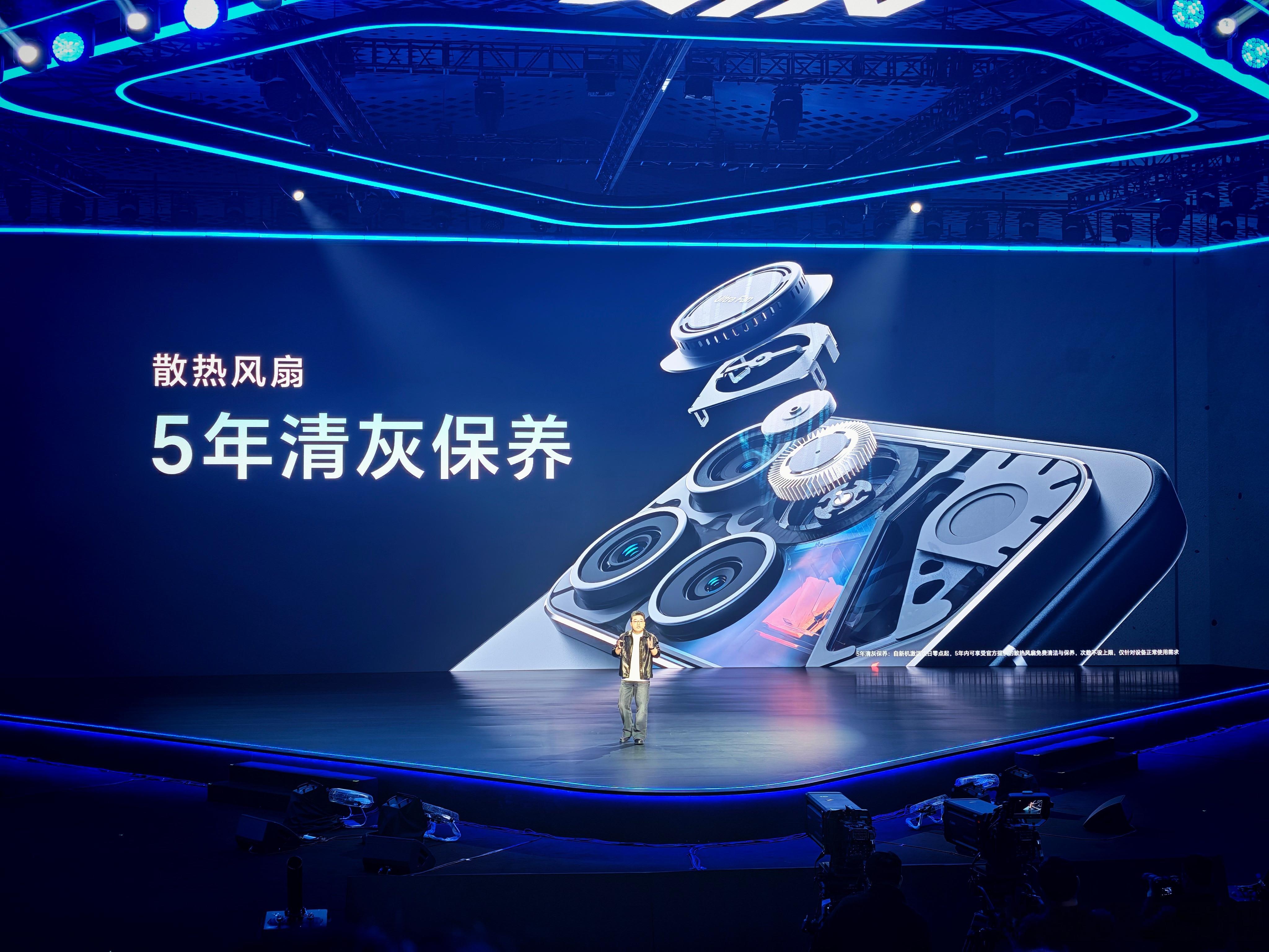 看一下荣耀WIN的风扇配置。带风扇的手机已经有挺多款了,荣耀WIN与众不同的是风扇直吹SOC,支持双360度环绕进风,最高转速达到了25000转/分钟,风噪只有25分贝,而且手机支持IP69K级的防尘防水,就算是不想用水冲洗手机,也可以到售后免费给风扇清灰保养,总之大家担心的防水、积灰、噪声、耐用性这几个问题荣耀都给出了解决方案。