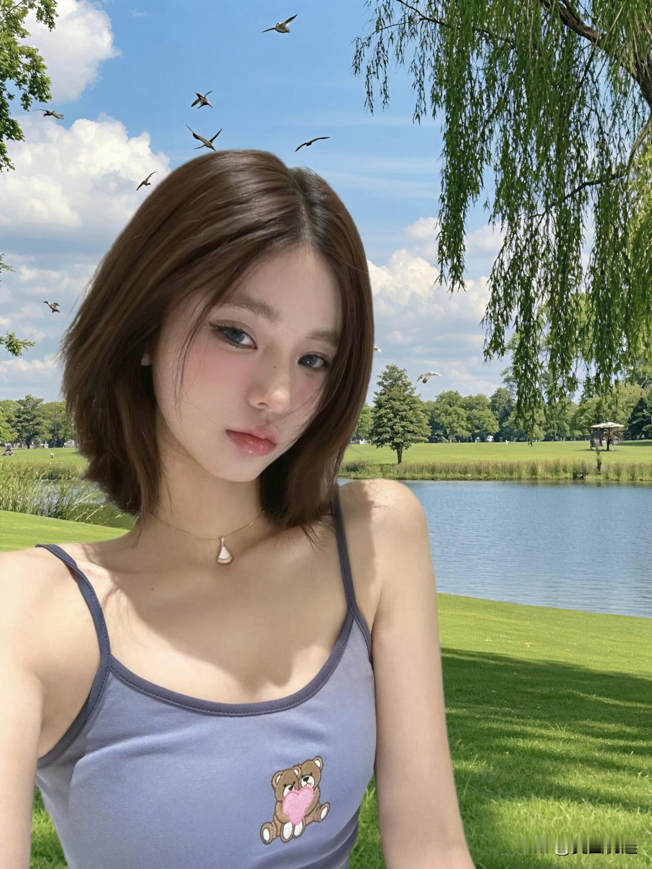 夏日清新自拍,绿意盎然公园,少女心满满!🌿💖