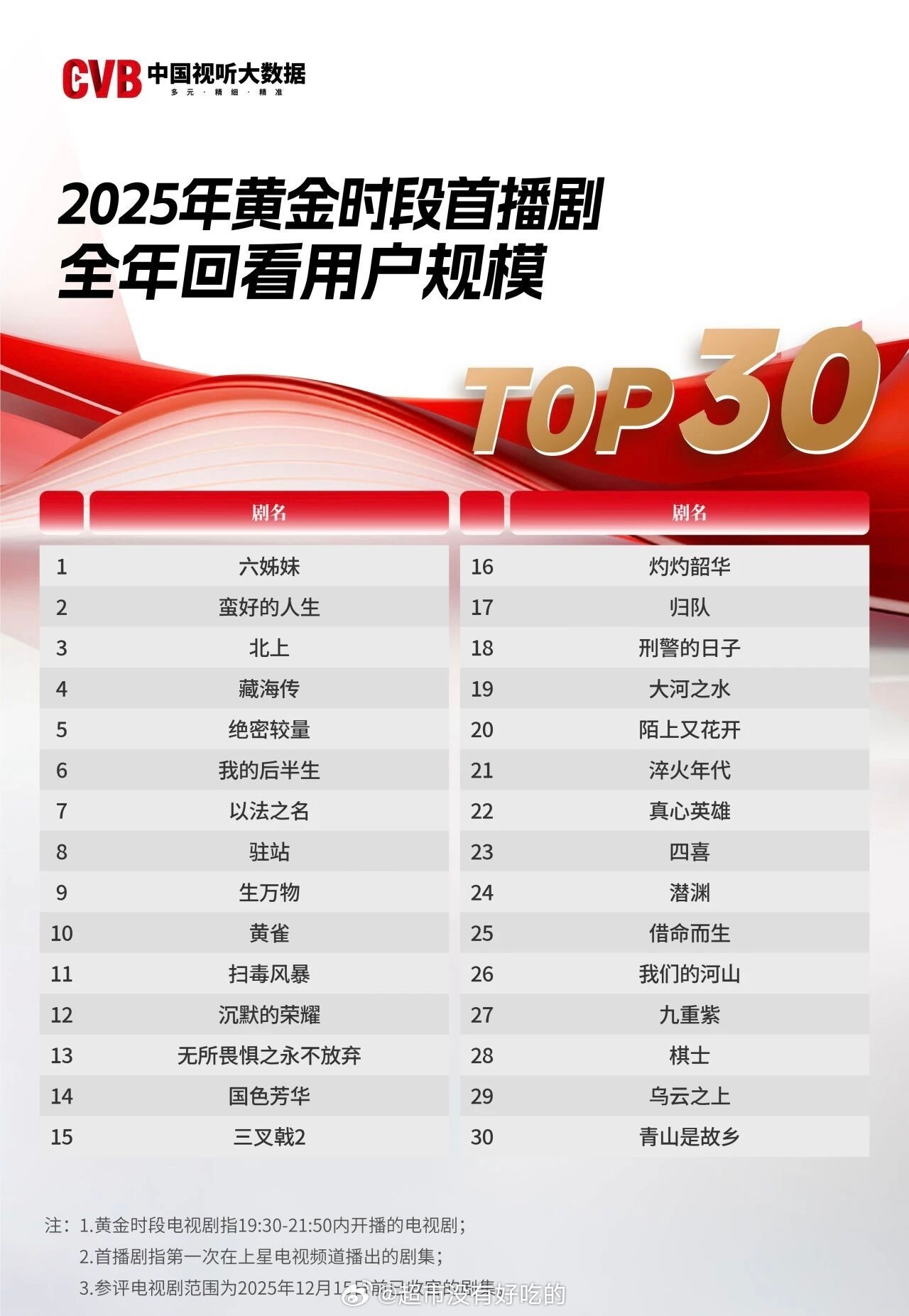 CVB 2025年国产电视剧收视报告白鹿《北上》收获优异收视🎉