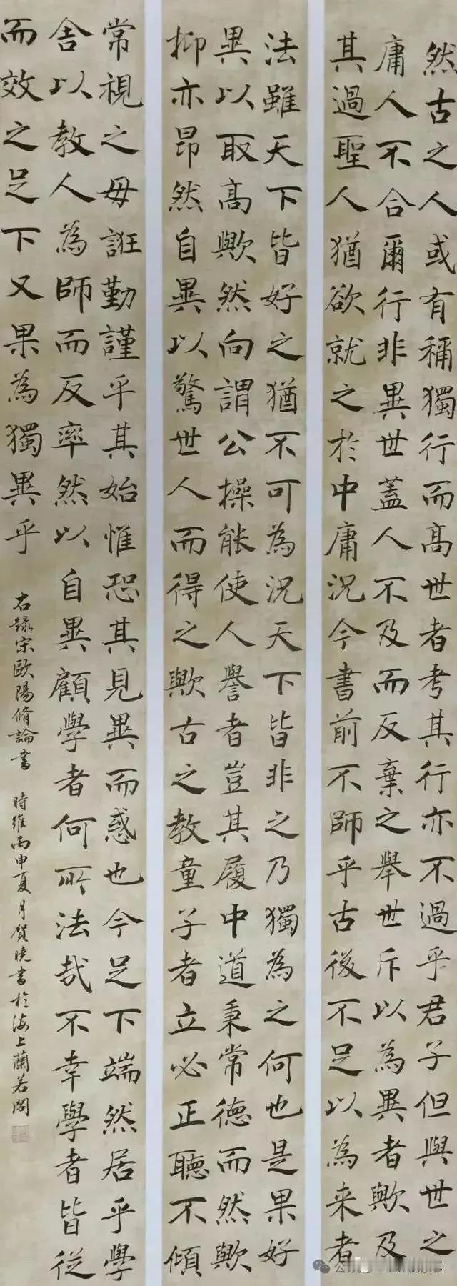 女检察官小楷入国展,这才非职业书家的笔墨荣光! 书法本是文人雅趣,古之名家常以余事作书,成就千古瑰宝。如今书坛格局转变,专业院校培育的职业书家成国展主力军,却也引出“职业是否等同于专业”的命题。 上海女检察官程贺晓给出了答案。身为四级高级检察官,她于繁忙工作之余浸淫小楷十载,遍临钟繇、二王、欧褚等法帖。其入选十三届国展的作品,单字仅0.6公分,取法小欧又融二王笔意,笔画精谨、圆融古雅,尽显专业水准。 这份不带功利的热爱,打破职业与专业的界限,也为万千书法爱好者点亮了逐梦之光。