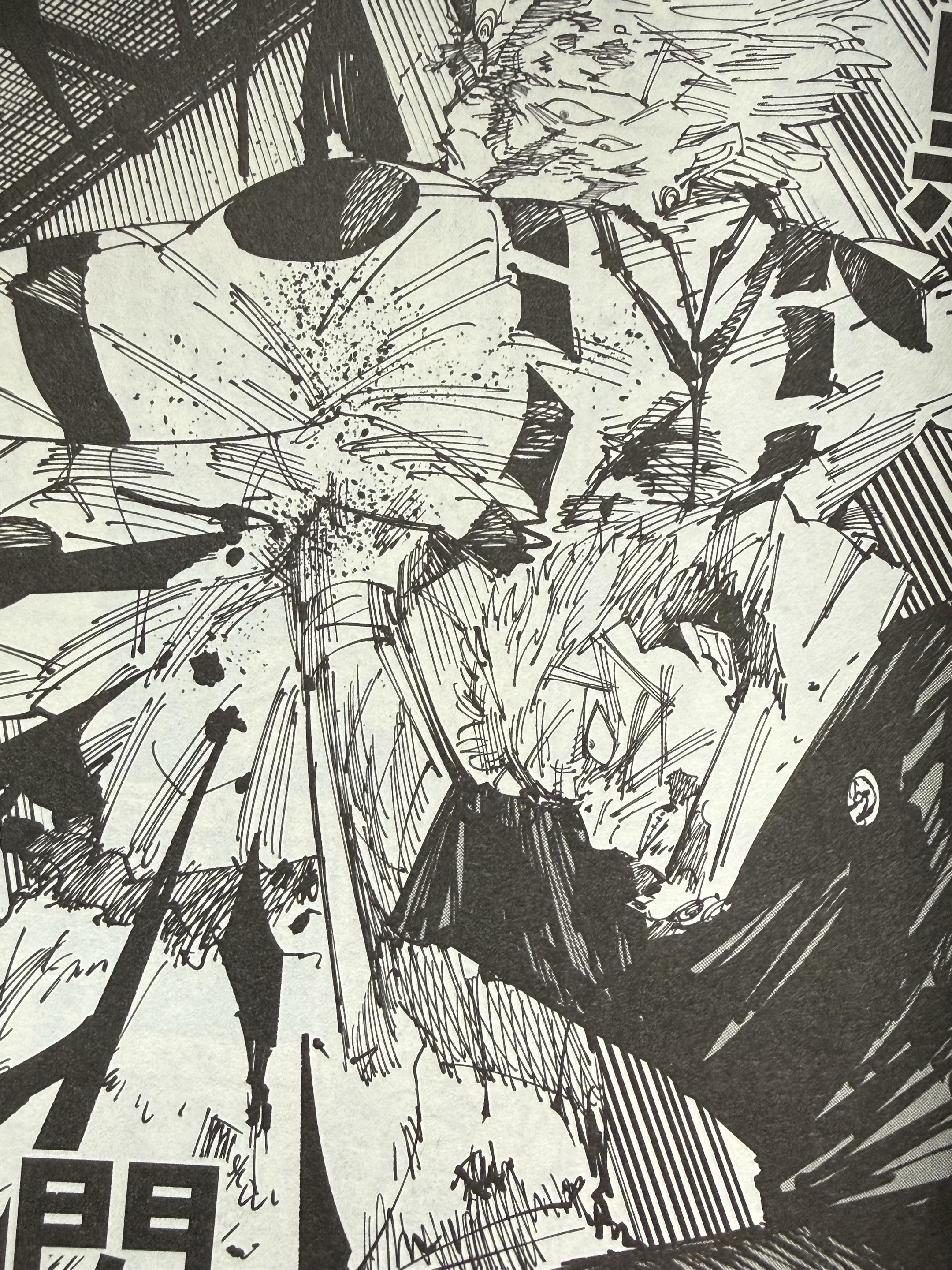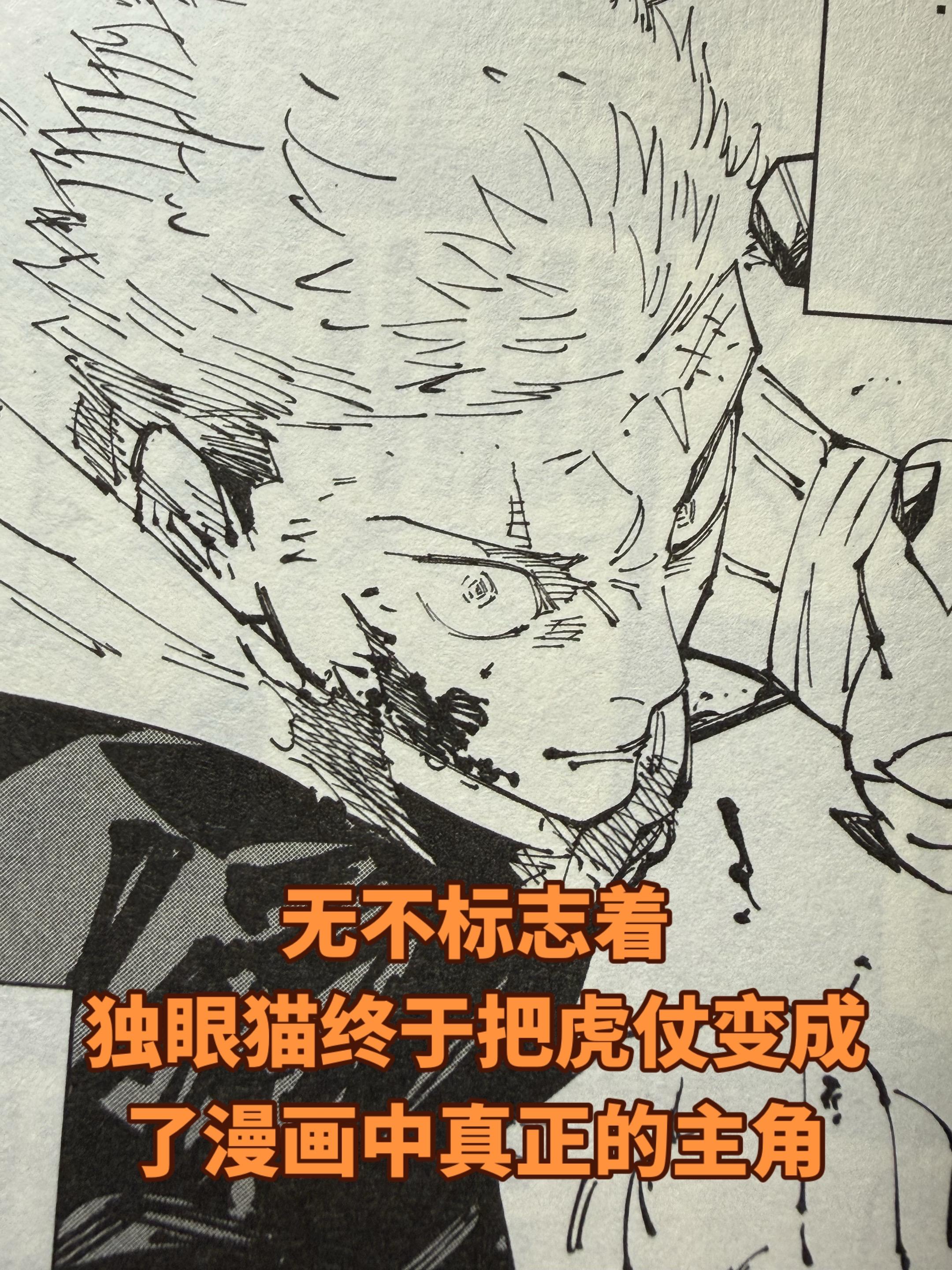 《咒术回战》二十九卷,来自虎仗的暴击。这一卷的虎仗仿佛是独眼猫情绪的发泄“终于打完就可以不用画了!”漫画漫画家绘画笔记