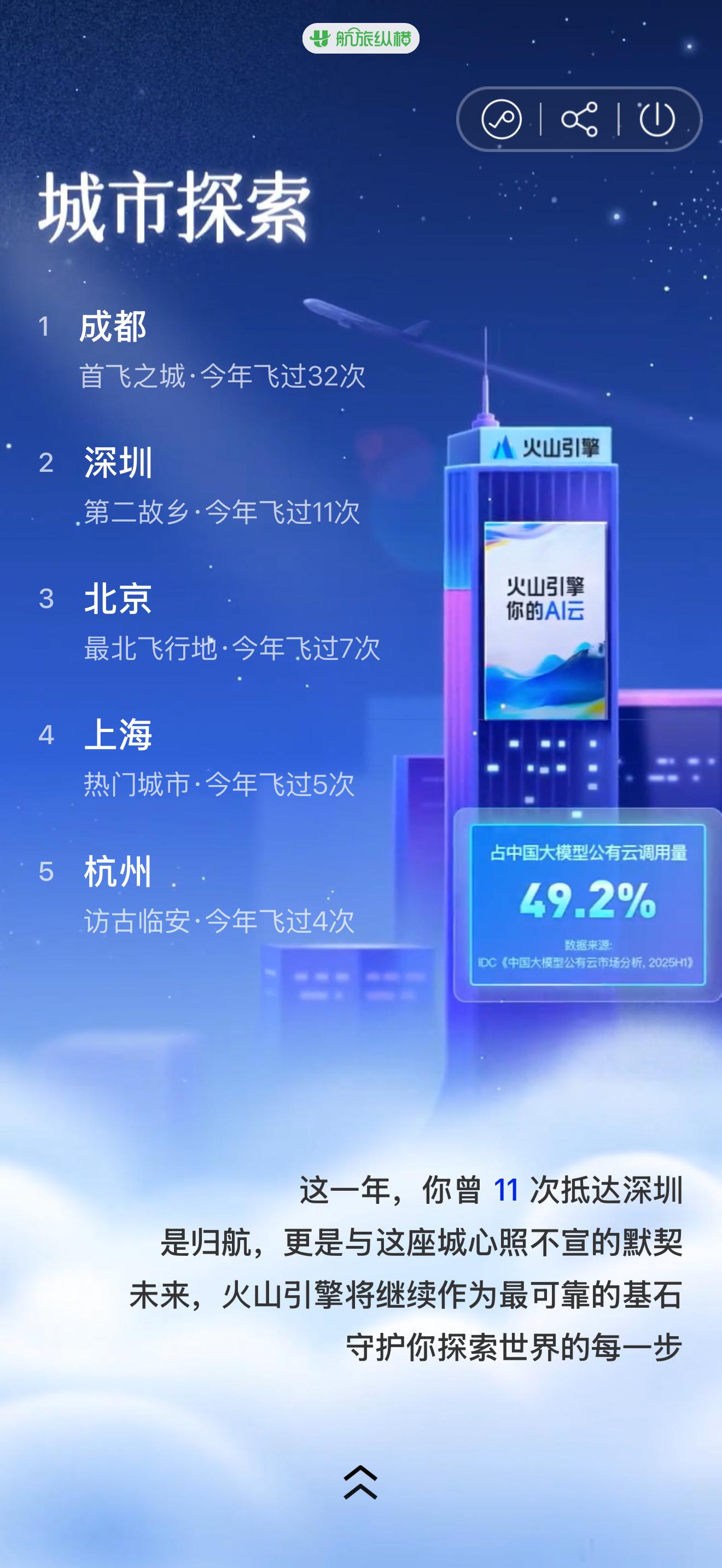 航旅纵横的年度报告。今年我平均每5天飞一次,快把深圳飞成第二故乡了啊,累到意识模糊。明年,本老年人不能这么熬了,得躺平歇歇