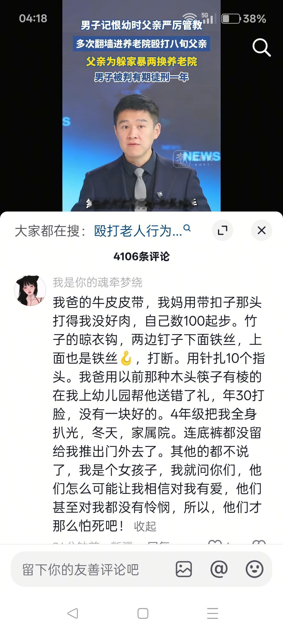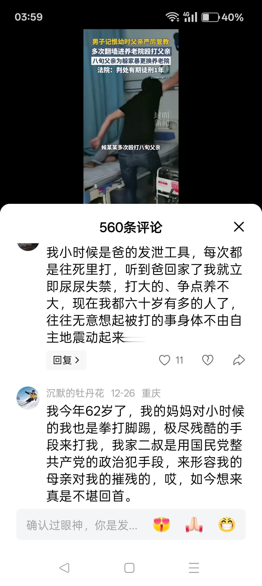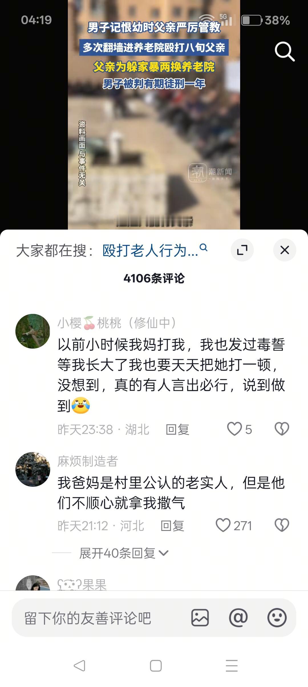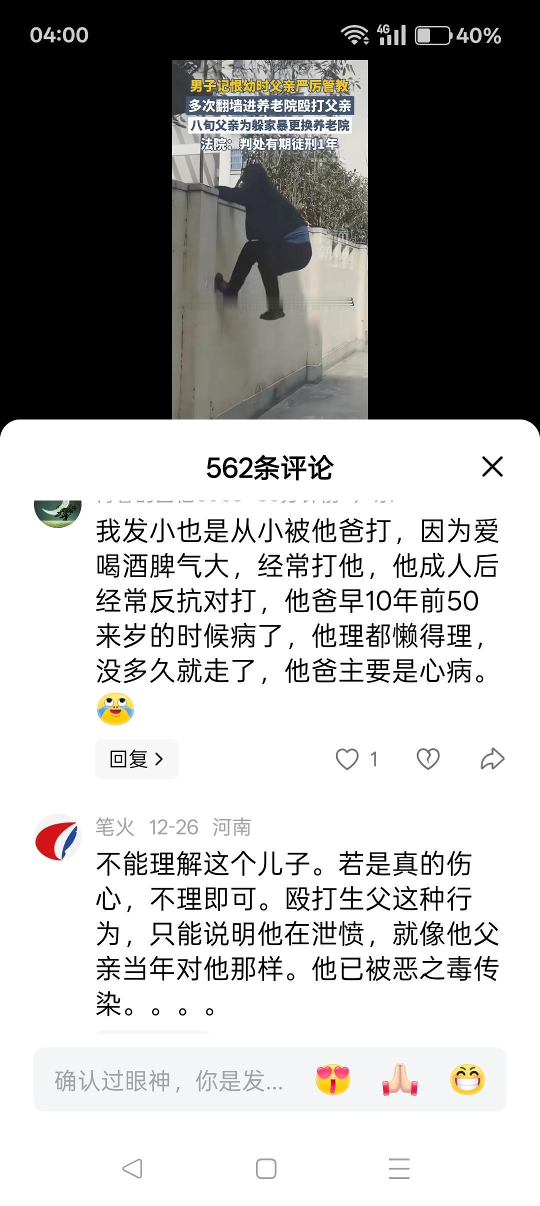 殴打八旬老父亲,为什么网友不轻易同情老人、谴责儿子? 山西运城闻喜县男子侯某某,因记恨幼时父亲“严厉管教”,多次翻墙进入养老院殴打八旬父亲,而且不履行赡养义务,最终被法院判处有期徒刑一年。 从法律上讲,多次翻墙进养老院殴打八旬老人,不履行赡养义务,这情节恶劣。判刑一年没毛病。 虽然媒体未说清楚老人当年“严厉管教”的详情,但是从侯某某的表现来看,恐怕当年情况非常恶劣。 毕竟作为一个中年男人,应该心智成熟、性情稳厚,而且幼时的故事已经过了那么多年,早该放下了,但他不履行赡养义务,还多次翻墙进养老院殴打,生怕还没打够就死了,可见对父亲仇恨之深——应该是幼年受尽了虐待。 多数网友没有盲目地同情老人,反而纷纷讲述自己童年被父母肆意殴打辱骂的不幸经历。这证明,并不是所有的父母都爱惜儿女,天下没有不是的父母太言过其实。 常言道,父慈子孝。为人父母只有善待儿女,年老后才有可能得到儿女的孝顺。否则,将来很可能受到儿女的报复,最终自食恶果。