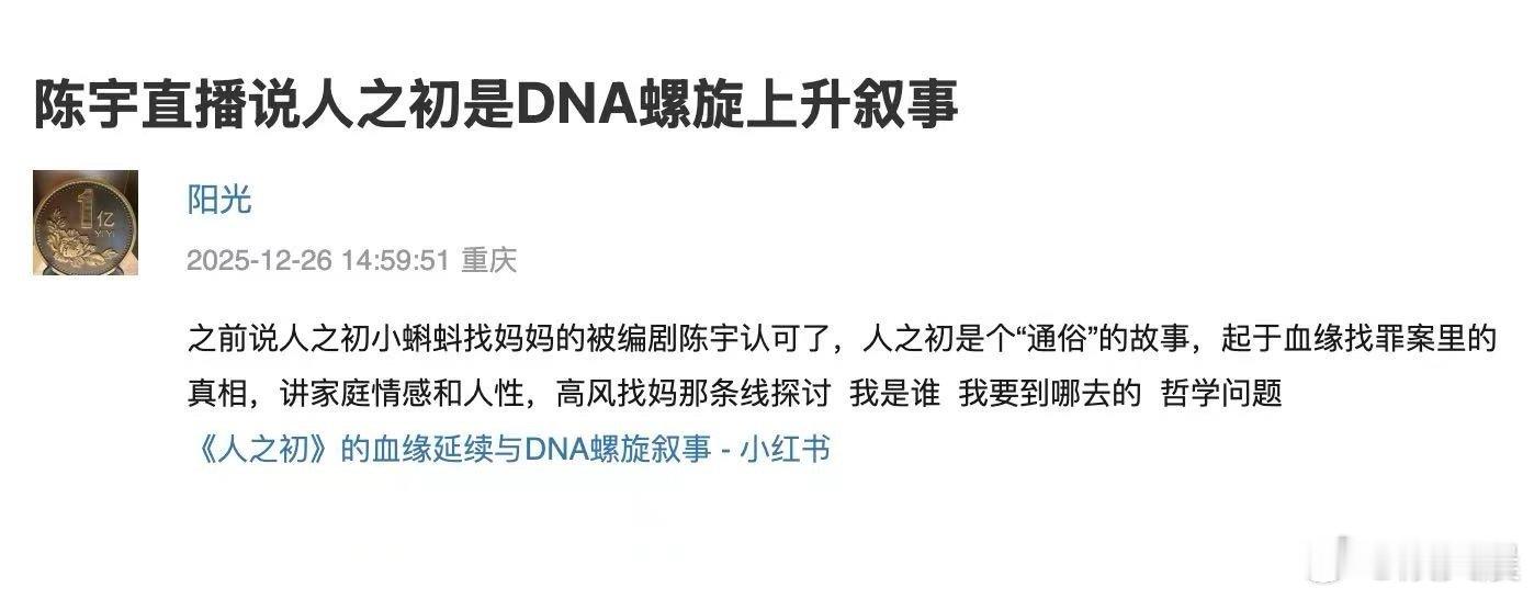 人之初 叙事结构人之初叙事结构很独特 看剧需要带着思考,每一集的细节都可能是关键线索,双螺旋结构让真相层层递进,越看越上头根本停不下来。