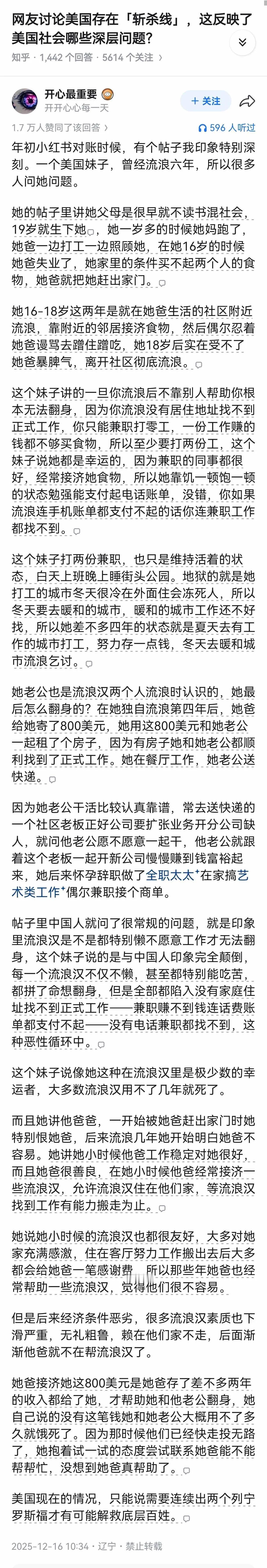 看完真给我惊到了,流浪街头还能逆袭翻盘,这姐们儿太狠了!更让我没想到的是,她爹当年不是单纯撵她走——是算明白了:俩人都耗着,全家都得完犊子。可细想又不对劲:一个姑娘家能吃多少口粮?连这点饭都得精打细算,这世道把人逼成啥样了……再往深了一琢磨,这事简直把美国的老底给揭了:普通人兜比脸干净,钱全堆在富豪兜里。