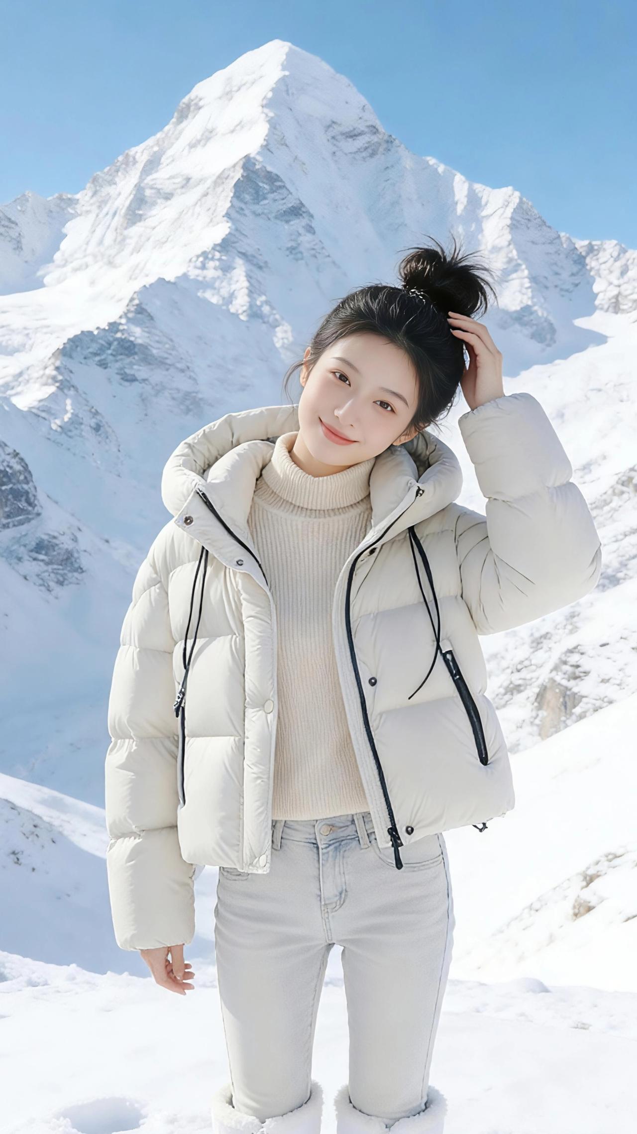 雪山之畔的冬日序章 雪色漫过山脊,将群峰揉成蓬松的棉絮,蓝天像被雪水洗过,清透得能映出人心底的温柔。 我站在这片纯白里,米白的羽绒服裹着周身的暖意,高领毛衣的纹路摩挲着脖颈,像触到云朵的软。指尖轻绕起头顶的丸子头,风掠过发梢,捎来雪山凛冽又干净的气息。抬手扶着羽绒服的帽沿,或是将手揣进兜袋,脚下的雪粒轻轻咯吱作响,仿佛是雪山在低声回应。 索性张开双臂,让自己融进这片天地。雪山沉默矗立,千年的雪在阳光下闪着细碎的光,而我像一粒偶然落在雪地里的星子,在冬日的辽阔里,寻到了最轻盈的欢喜。风穿过指缝,带走所有琐碎的烦恼,只留下眼前的雪、远处的峰,和心底漾开的温柔。 高级感穿搭 冬季穿搭 新年穿搭 棉衣棉服