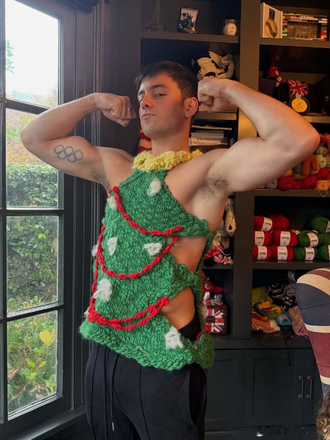 “织毛衣小王子”戴利和家人的圣诞节。哈哈哈,应该都是他自己亲手编织的毛衣。戴利