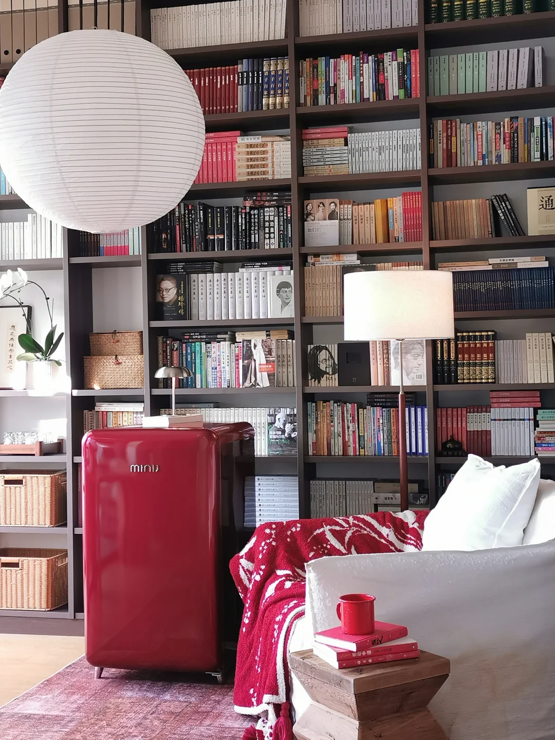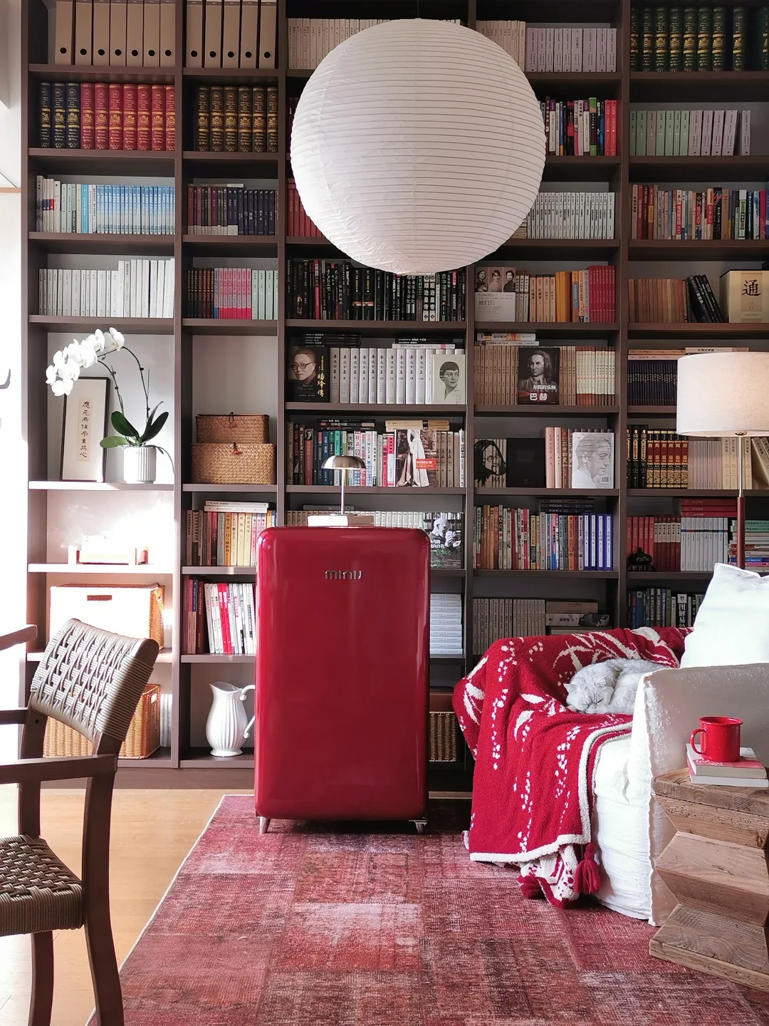 新年快到了,又入了一台小吉复古小冰箱,放在书房里用。这款是丹霞红的配色,烤漆的工艺,有流动感还不会褪色,红得温润又有层次。放在中古风的书房中,瞬间把沉闷的书房点亮。如果新年也想布置新家,他家还有其他颜色,可以看看。