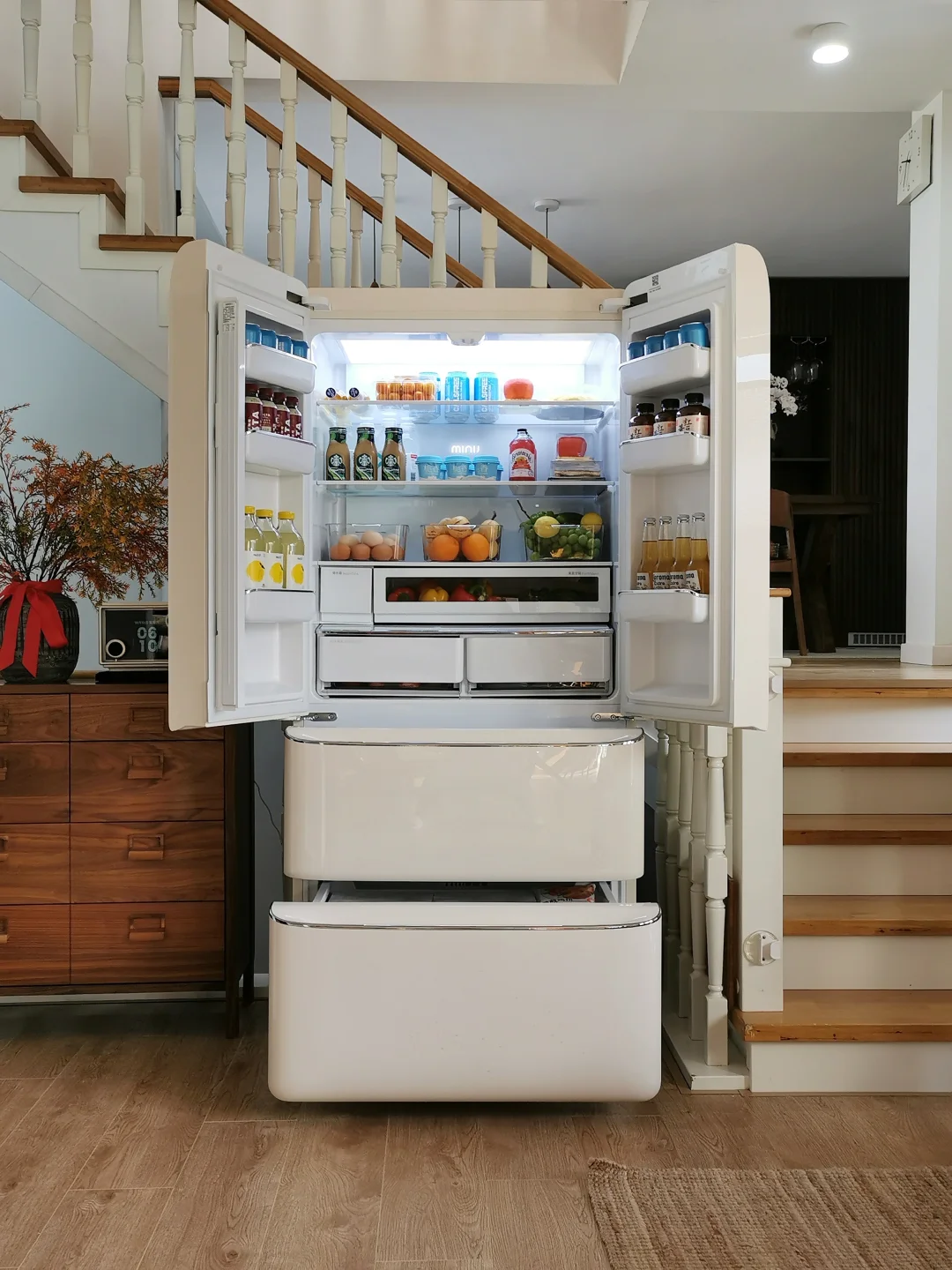 专门的果蔬抽屉,绿叶菜放进去一周还是脆生生的;冷冻室更是细致,鱼、肉、主食分格摆放,不必翻箱倒柜,取出从容得像在整理自己的收藏。