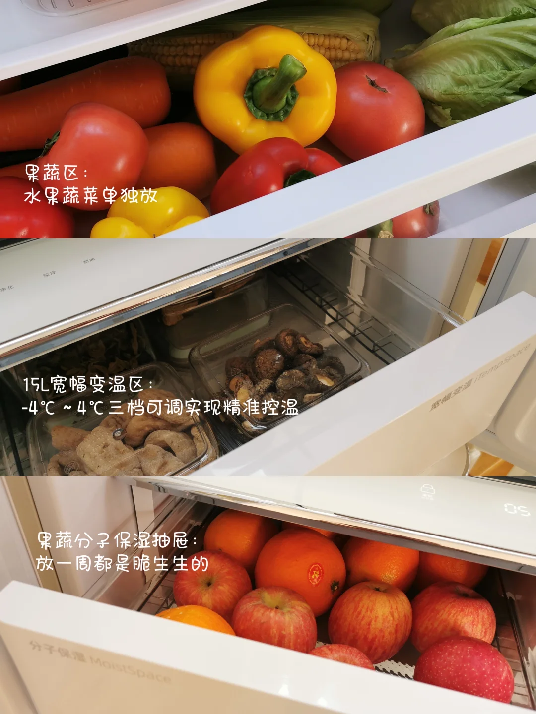 508L的空间,蔬菜、水果、肉类各有各的“房间”,互不打扰味道不串门,巨喜欢15升宽幅变温区,像魔法箱: