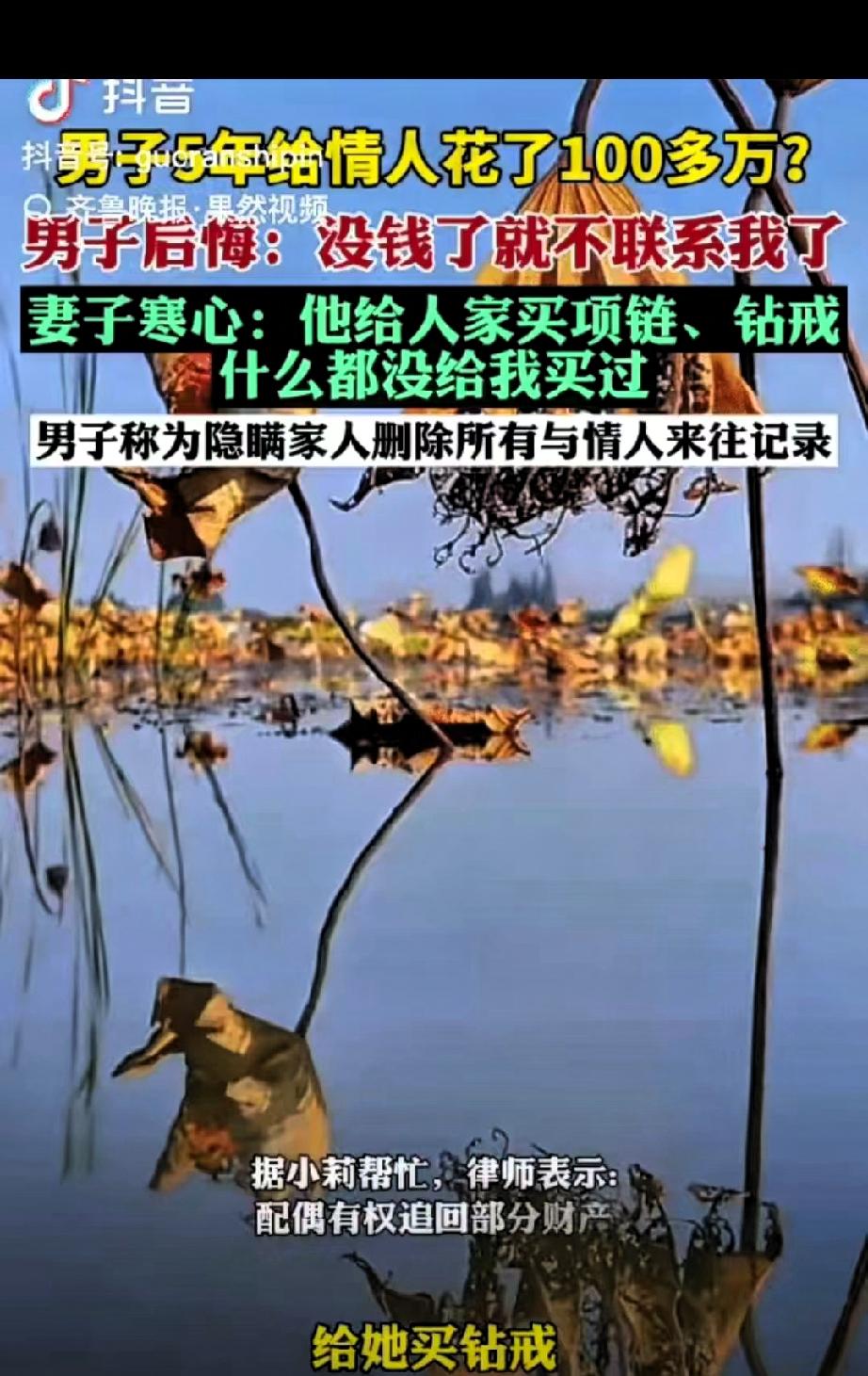 果然,男人只有挂到墙上才老实!河南,五旬大叔,找了个小三,两人在一起5年 5年时间里,他前前后后为小三花了近百万,买钻戒、转微信、给现金,出手大方得很,可对陪自己走过32年的原配,他却从未如此上心,别说贵重礼物,连份像样的心意都没送过。 这些被挥霍的钱,本就是夫妻共同财产,他却自顾自拿去讨好外人,完全没顾及家里的另一半。 等到大叔的钱花得差不多,身体又出了状况,再也没了利用价值,小三的态度立刻变了——直接拉黑联系方式,彻底断了往来。直到这时,大叔才幡然醒悟,心怀愧疚地回家求老婆孩子原谅。 原配的委屈可想而知,32年的相濡以沫,抵不过外人几年的甜言蜜语,自己的合法财产还被丈夫拿去填了外人的口袋。她不甘心就这么算了,哪怕转账和聊天记录都被大叔删得一干二净,也决定找记者帮忙,走法律途径讨回属于自己的那部分钱。 其实这事说到底,婚外情里根本没什么真情,不过是各取所需的利益交换。你图对方的年轻貌美,对方图你的钱财支持,一旦没了好处,关系也就走到了头。而那些被辜负的原配,从来都不该为别人的错误买单。 大叔的遭遇,既是教训也是警示,婚姻的底线是忠诚,更是对共同财产的尊重。