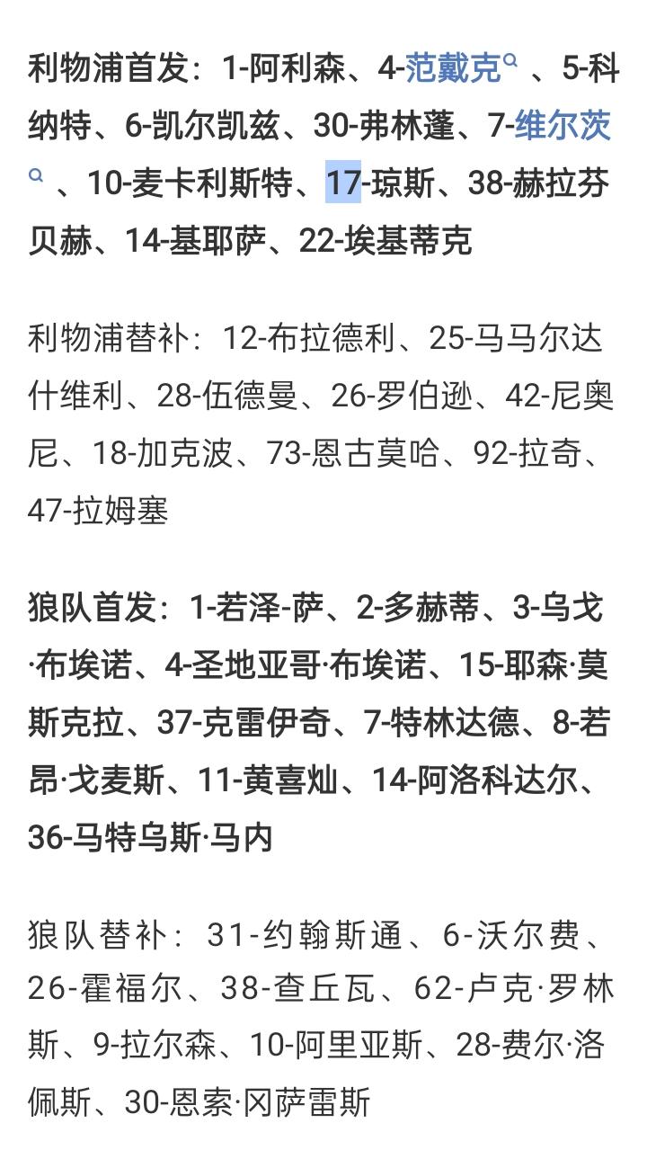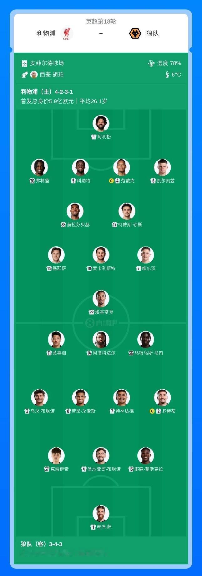 英超 利物浦vs狼队首发:基耶萨先发!维尔茨、麦卡、赫拉芬贝赫、埃基蒂克、范戴克出战 12月27日23点,英超第18轮,利物浦主场迎战狼队,赛前双方公布首发阵容。利物浦方面,基耶萨本赛季英超首次先发,埃基蒂克、维尔茨、麦卡、赫拉芬贝赫、范戴克悉数出战;索博斯洛伊因累计黄牌停赛