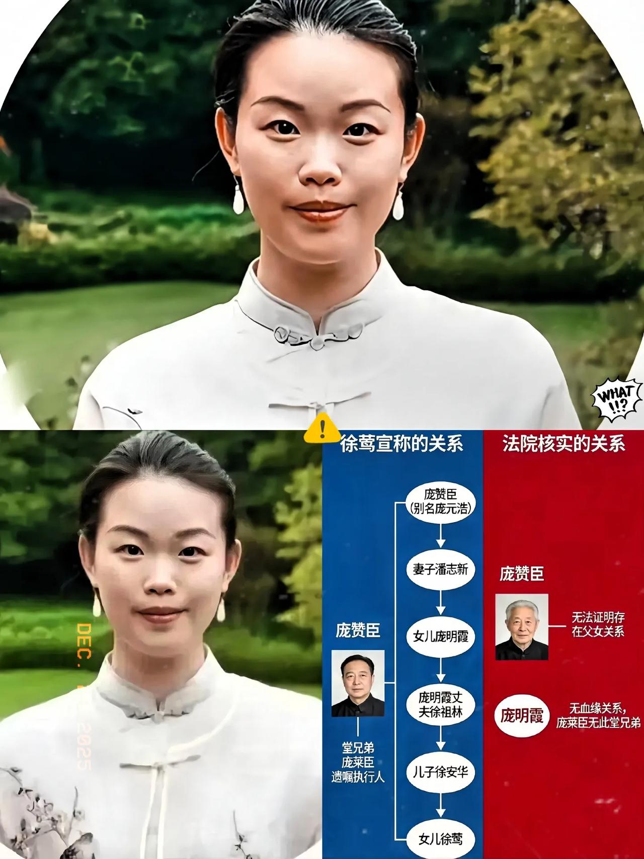 好家伙,这次法院甩出来的“实锤图”,算是彻底把徐莺的嘴给堵严实了! 之前她那个“庞赞臣曾外孙女”的名头喊得震天响,结果呢?法院倒查三代发现,压根就没庞赞臣这号人,纯属她自个儿脑补虚构出来的。 这就让人大跌眼镜了,为了给自己贴金,连祖宗都能凭空捏造? 更讽刺的是,早在2016年法院判决书里就已经认定她身份造假,可这人居然还是杭州师范大学的副教授。 我就纳闷了,为人师表连最起码的诚信都没有,为了利益张嘴就是瞎话,这种品行到底是怎么混上副教授位置的?这不纯纯是在误人子弟吗。