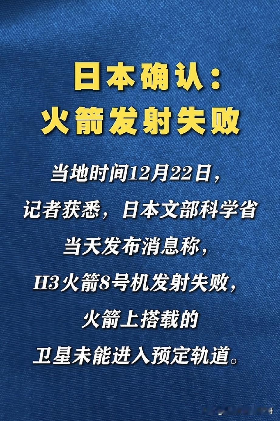 日本H3火箭再遭惨败!航天技术短板藏不住了 小央视频报道,11月9日日本H3火箭8号机发射再度失利!作为该国寄予厚望的新一代主力火箭,却屡战屡败,核心技术瓶颈与试验体系缺陷彻底暴露。 对比我们航天强国的稳定表现,日本所谓“航天优势”纯属自欺欺人,急于求成却缺乏扎实技术沉淀,这般水平何谈太空竞争?