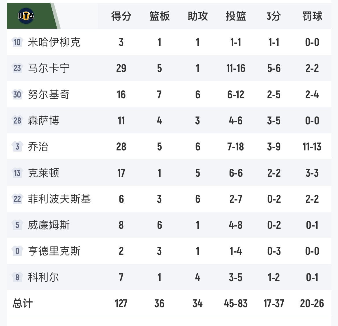 艾利斯首发出战32分钟,15投8中,三分10中5,得到21分3抢断2盖帽1失误。