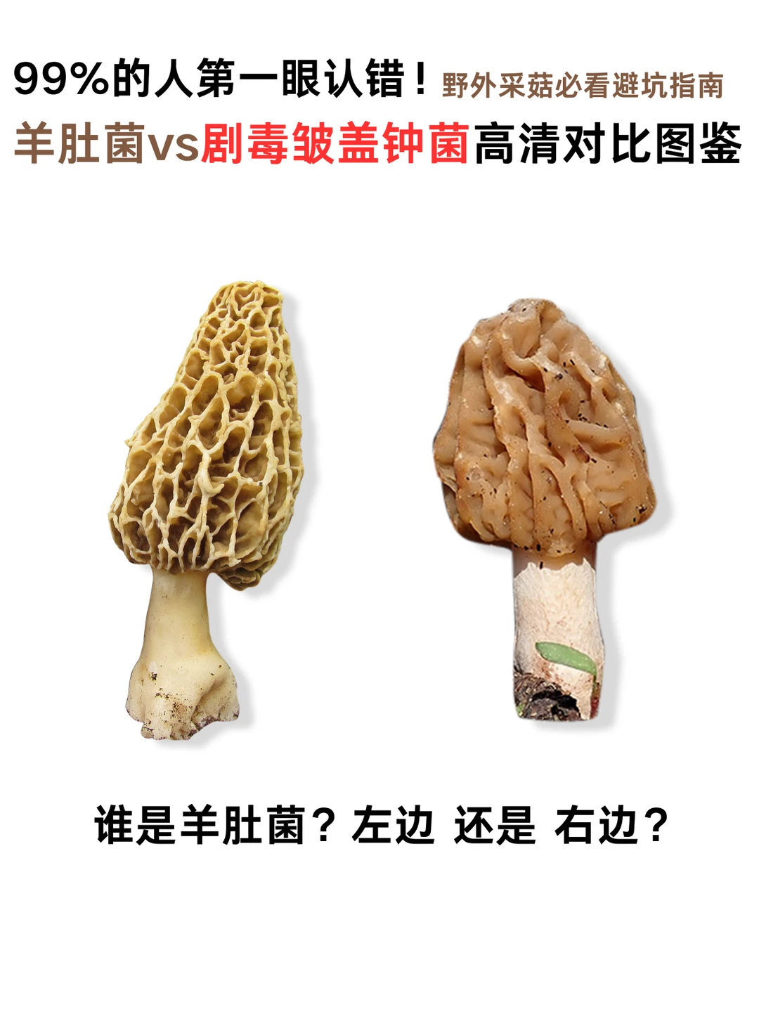 ⚠️99%的人会认错!羊肚菌vs剧毒皱盖钟菌