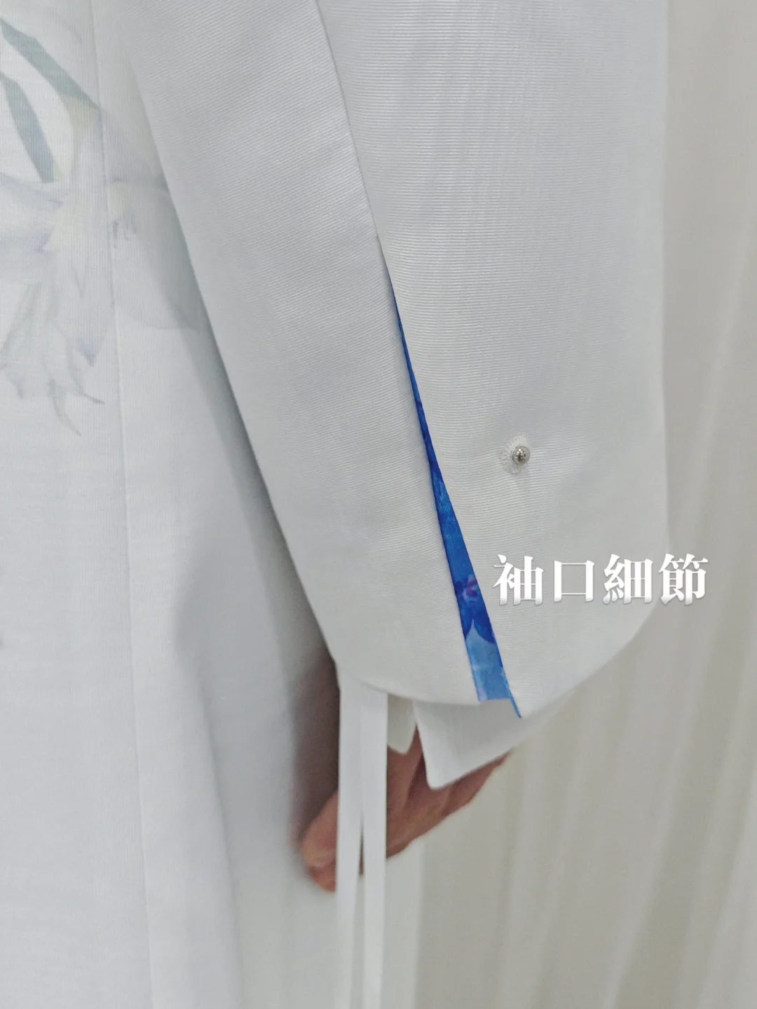 💙圖9,袖口緞帶,既呼應外套抽繩緞帶又可替代紐扣,且增加了自由浪漫