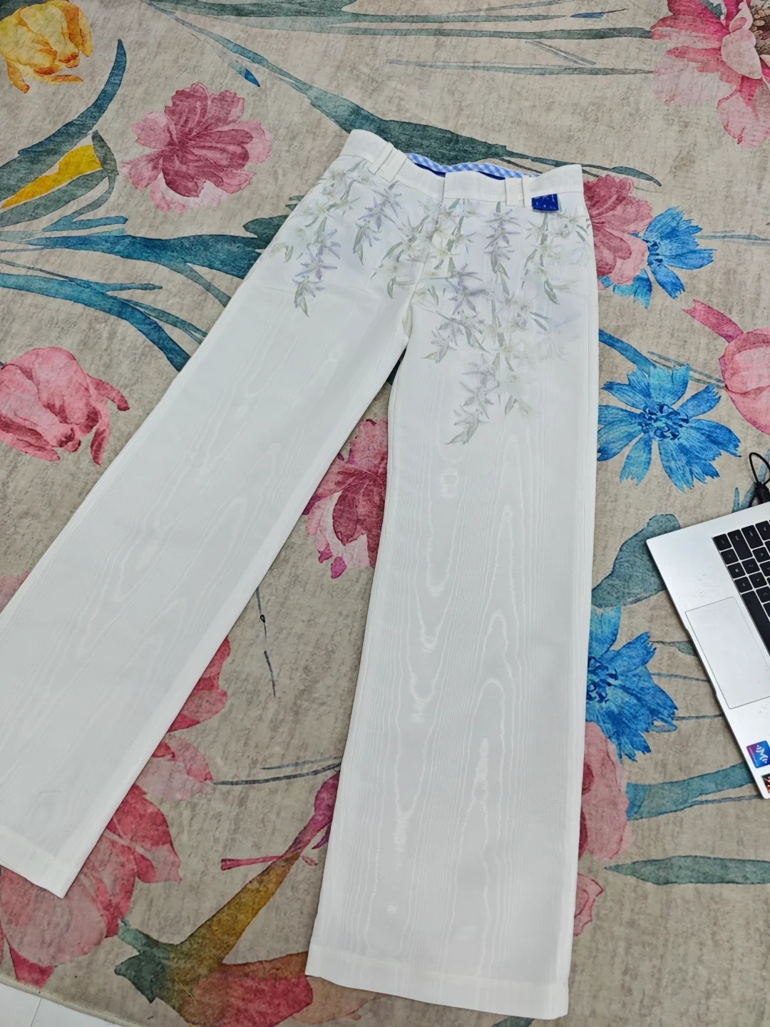 💙圖4—圖6,大衣和褲子面料是雲紋綢,面料紋理具有流動性,似流水似雲煙,可隨不同角度發生變化,其實很像摩爾紋,很妙「dior2026男女裝也有使用,且還著重介紹了面料的壓延工藝,它真的很美很特別」。