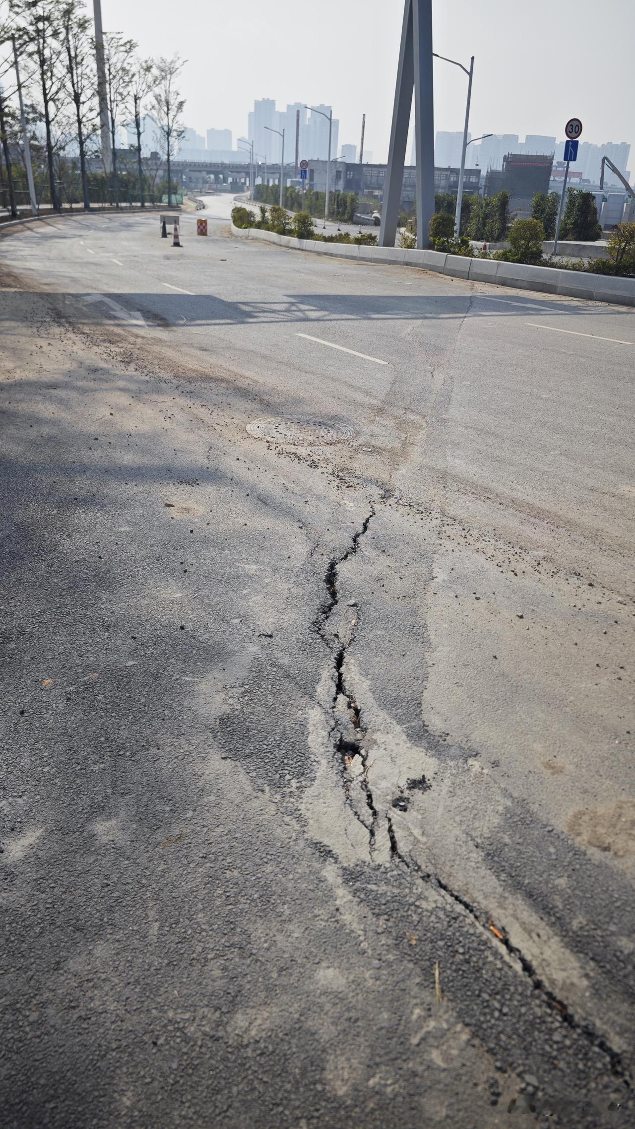 这通车没多久新路就变成这样子了,裂的裂,坑的坑,还有波浪路。最后就是三车道搞成一车道通行,路过的车开快点的都像坐过山车。真的太无语了。 你知道这是哪条路吗?