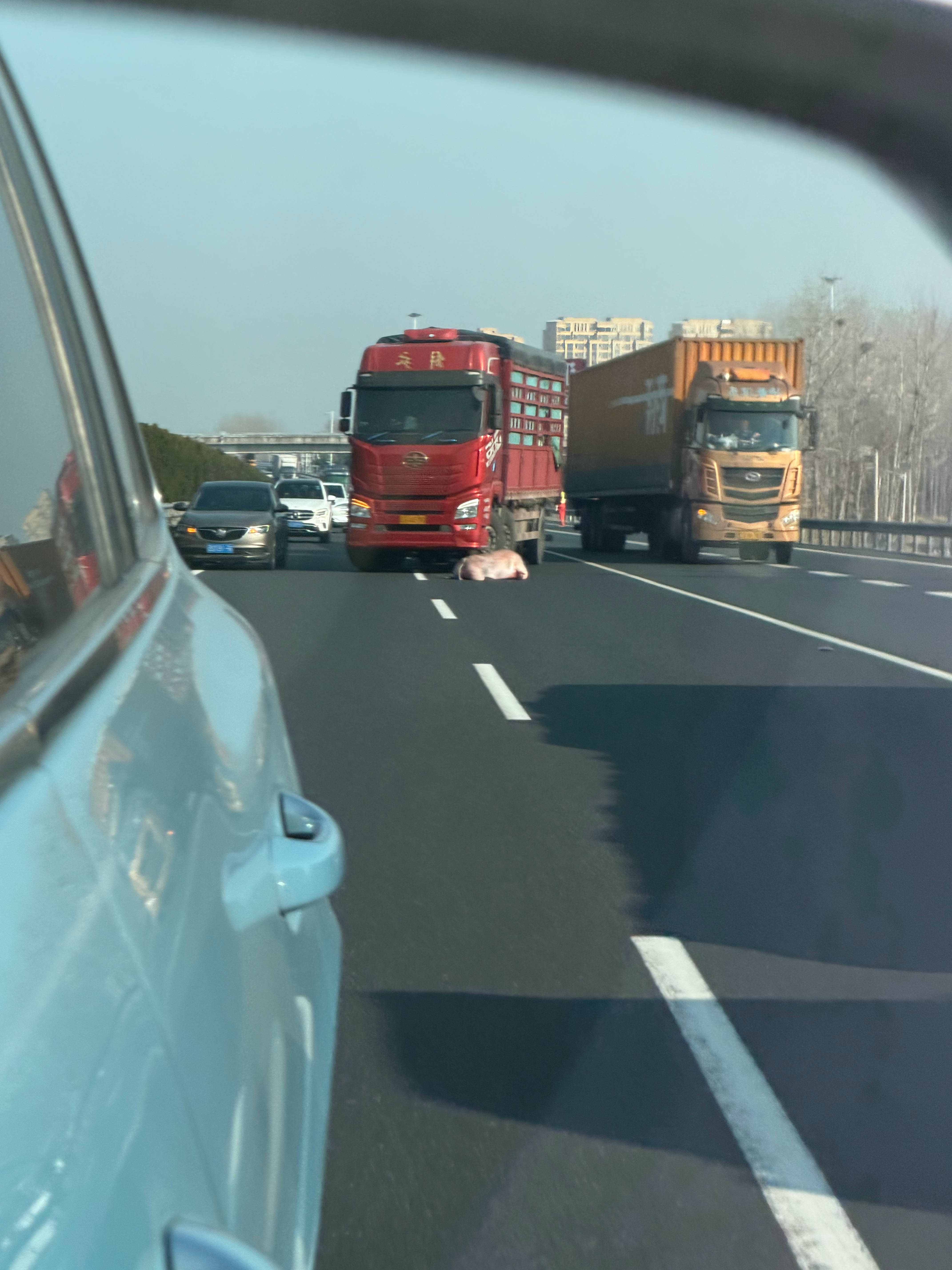 猪猪掉了导航提示前方路面有障碍物,原来是头猪 南通