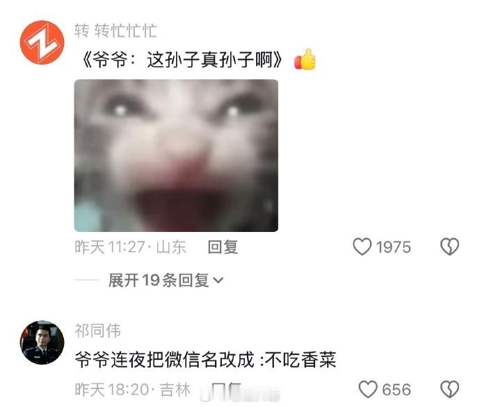 爷爷连夜全网改名不吃香菜哈哈哈哈哈哈哈哈