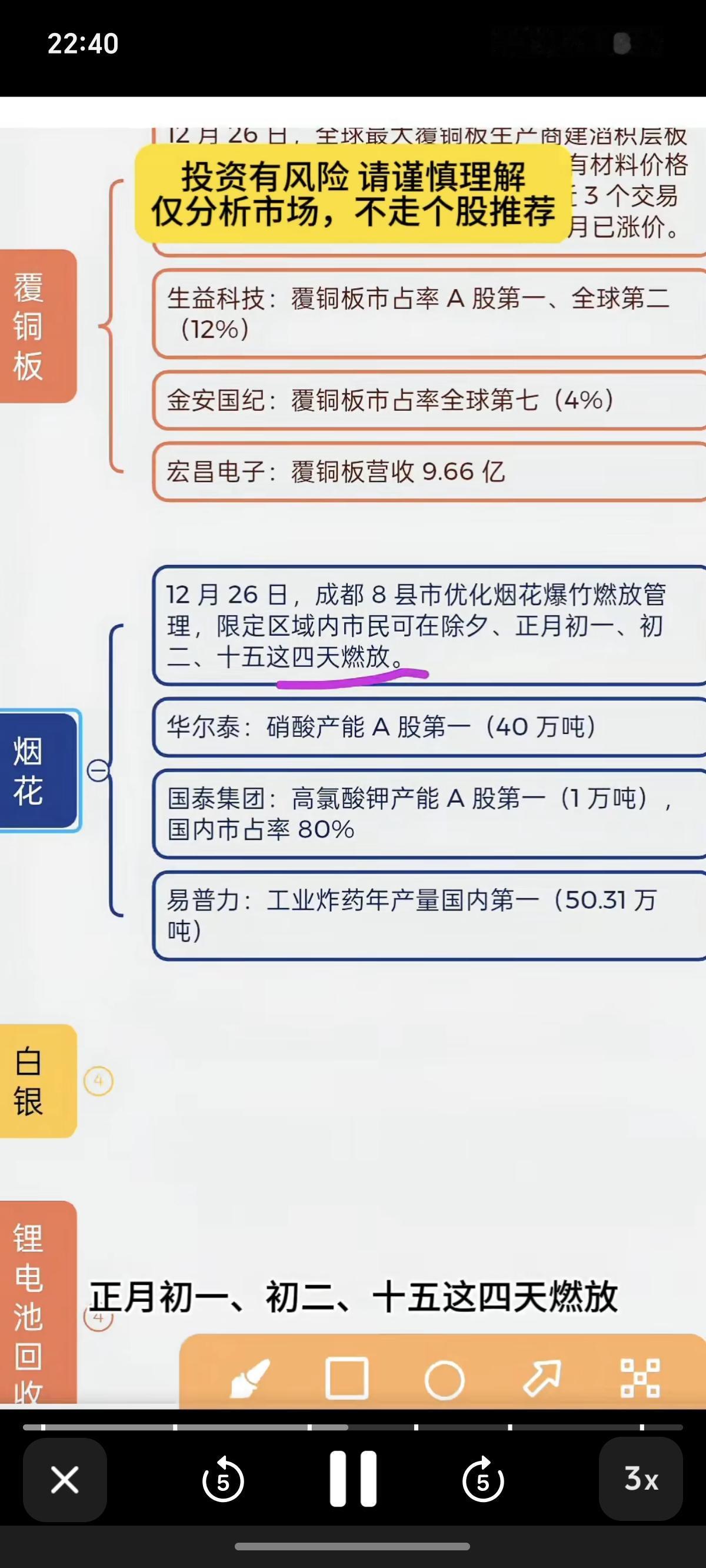12.29周一盘前 财经热点题材! 1.覆铜板 2.商业航天 3.烟花,民爆 4.白银 5.锂电池回收