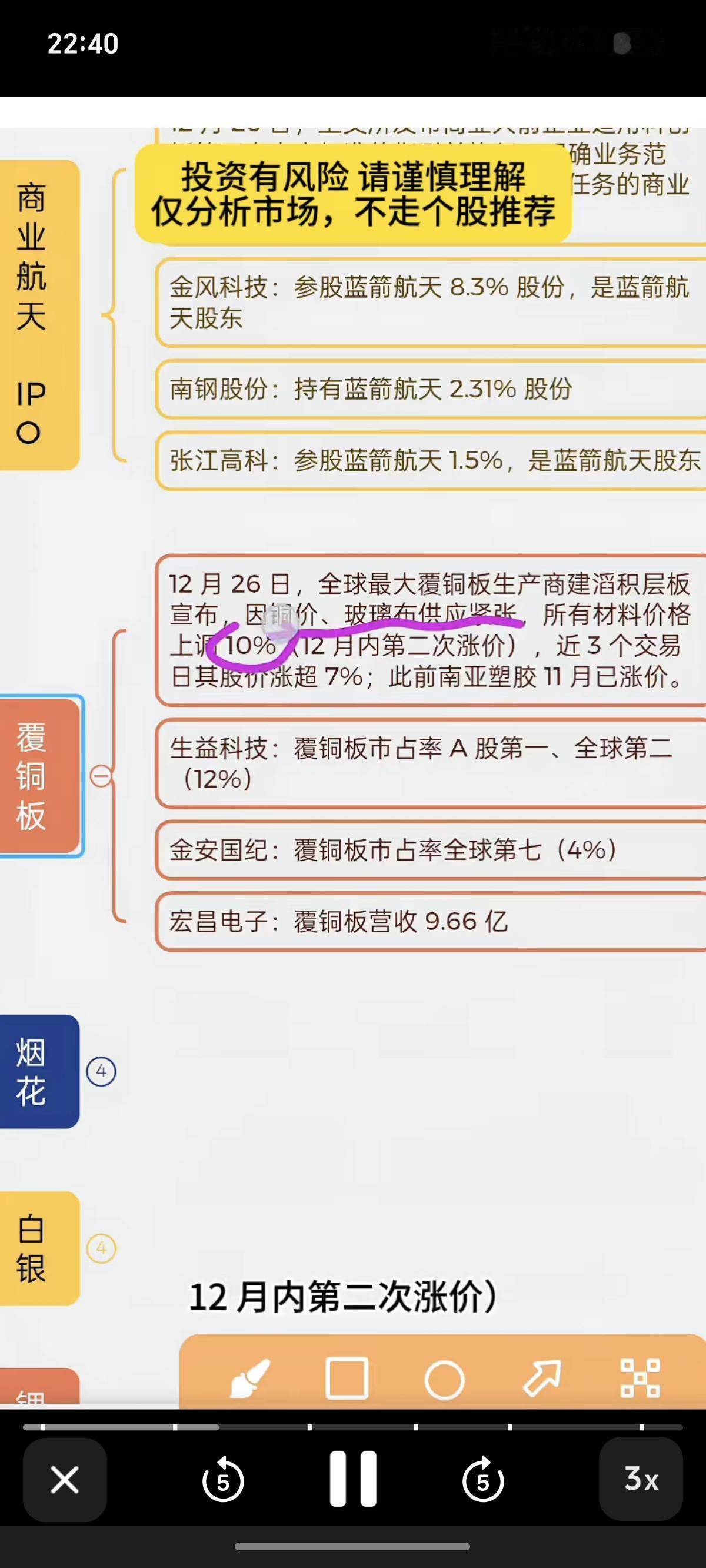 12.29周一盘前 财经热点题材! 1.覆铜板 2.商业航天 3.烟花,民