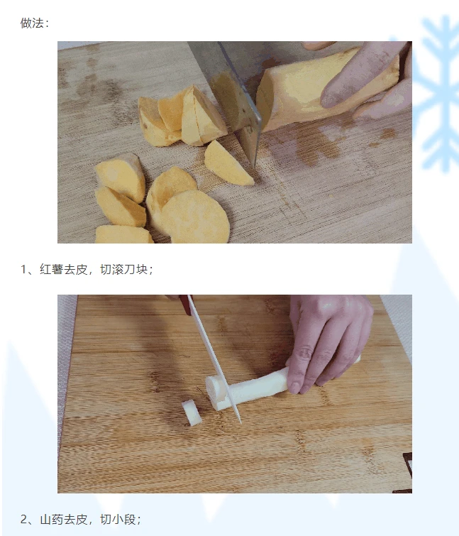 今天为大家准备了更为快捷好上手的粥品,用到的根茎类蔬菜为红薯和山药,当然大家也可以替换为其它食材,只要是适合孩子的,孩子愿意接受的,那就是成功的一餐。