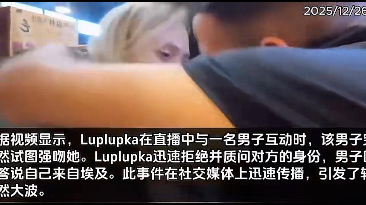 俄罗斯知名网红在中国直播时,遭到埃及男子强制索吻,她拒绝推开后男子压根不在意是否在直播,并没有松开他的手