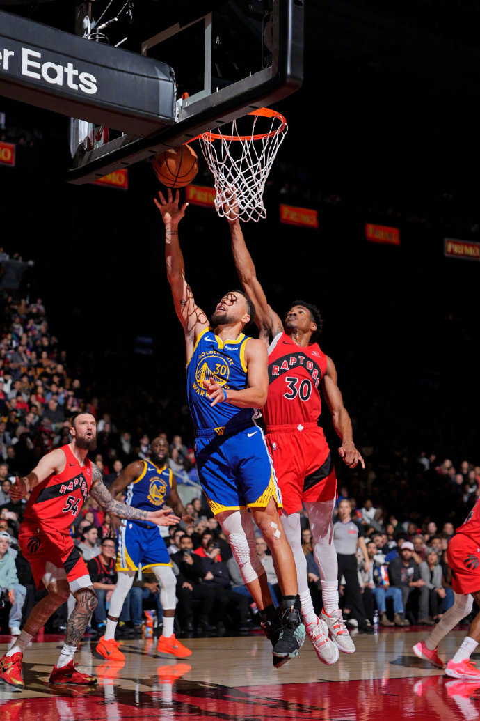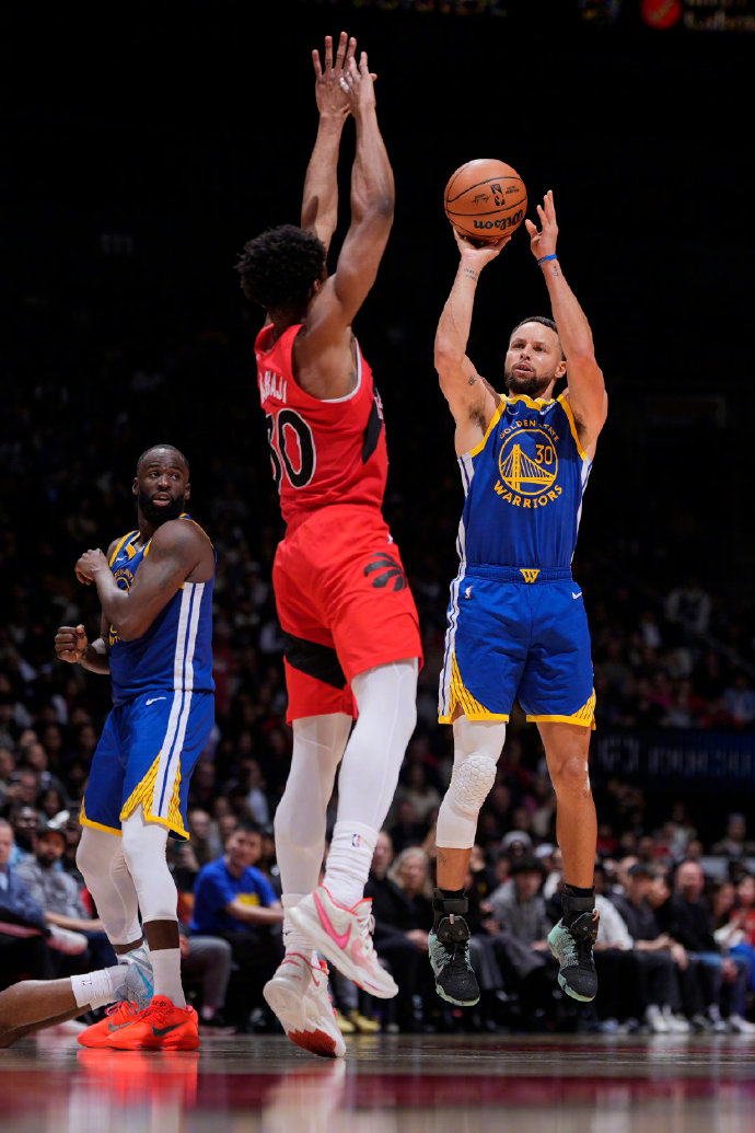 猛龙过江!#猛龙战胜勇士#  第四节最后1分43秒, 库里投进三分, 在拿下39