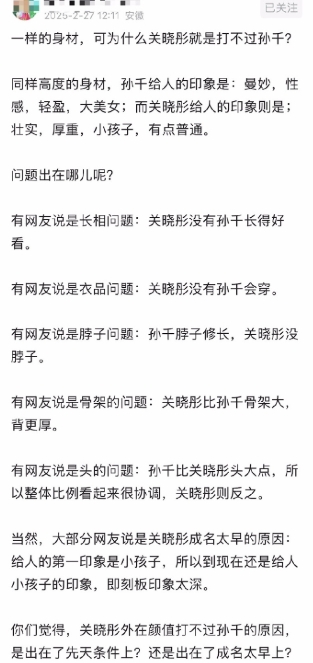 一样的身材,可为什么关晓彤就是打不过孙千?