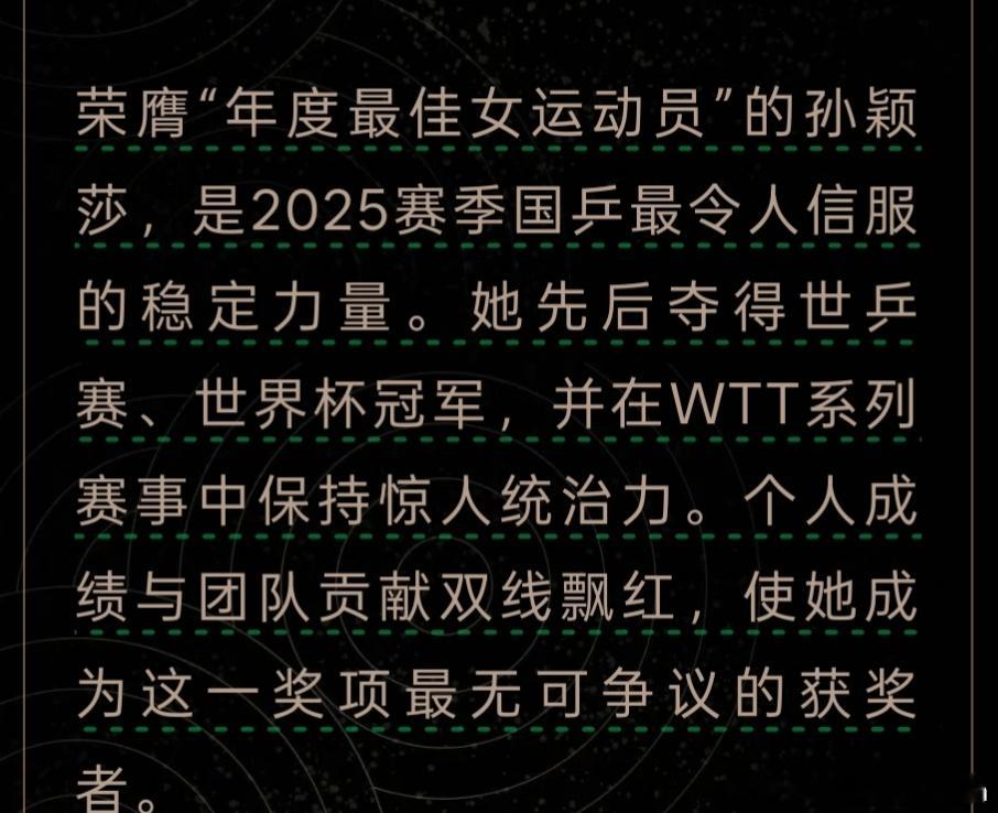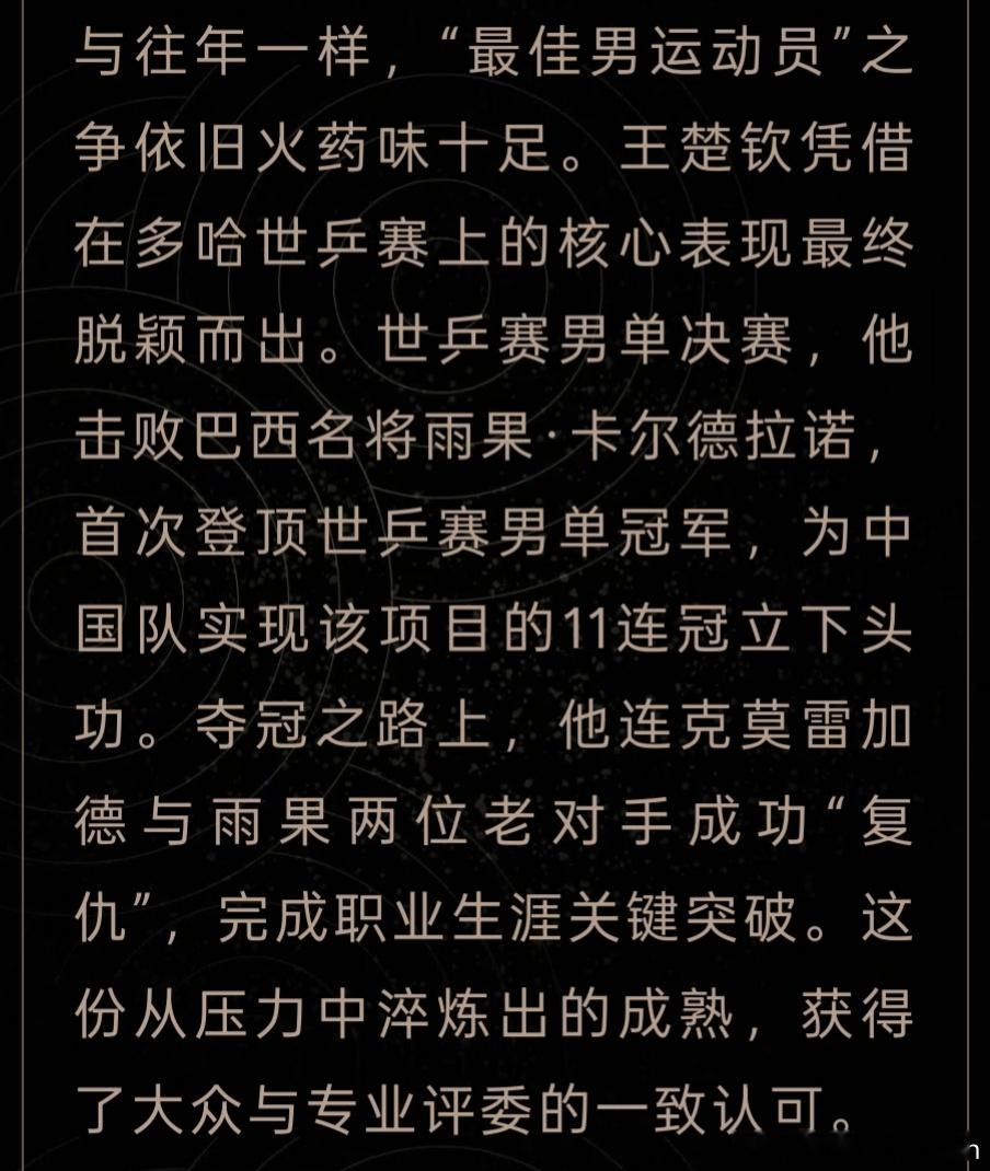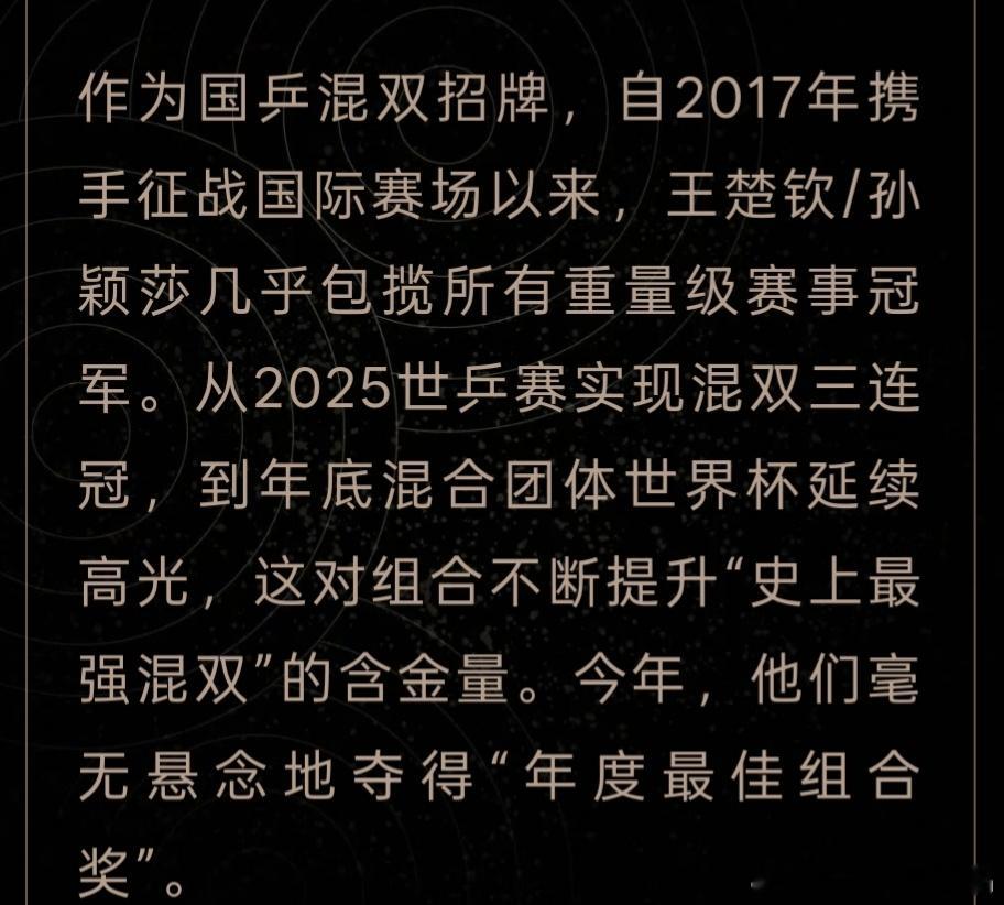 12月29日,由体坛传媒主办的2025体坛榜样年度评选结果正式揭晓。王楚钦、孙颖莎分别摘得“年度最佳男、女运动员奖”,并携手夺得“年度最佳组合奖”;中国乒乓球队获得“年度最佳团队奖”。