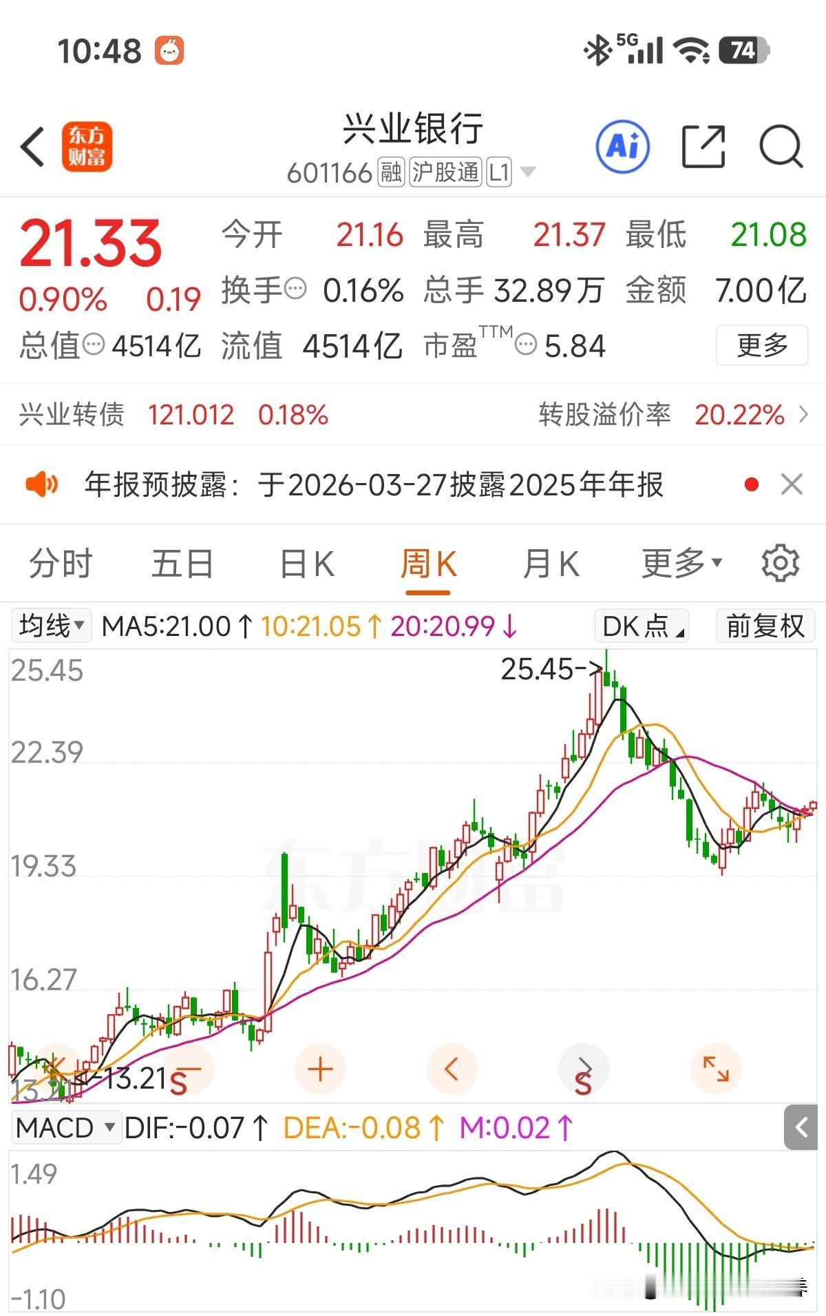 还剩下2个交易日,今天兴业银行上半年走势气势如虹,有点遗憾的是即将冲击强赎后开始