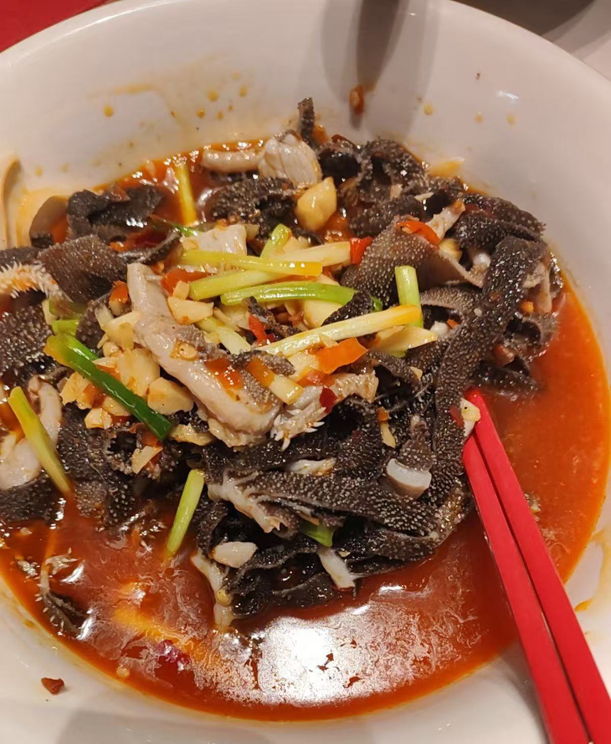 1️⃣.零陵血鸭,永州美食名片实锤!鲜鸭血裹着鸭肉翻炒,香辣咸鲜入味。