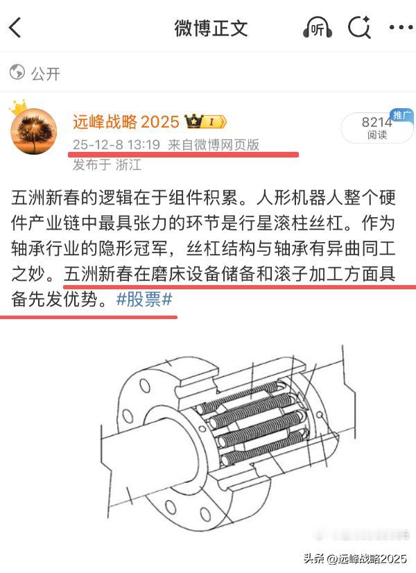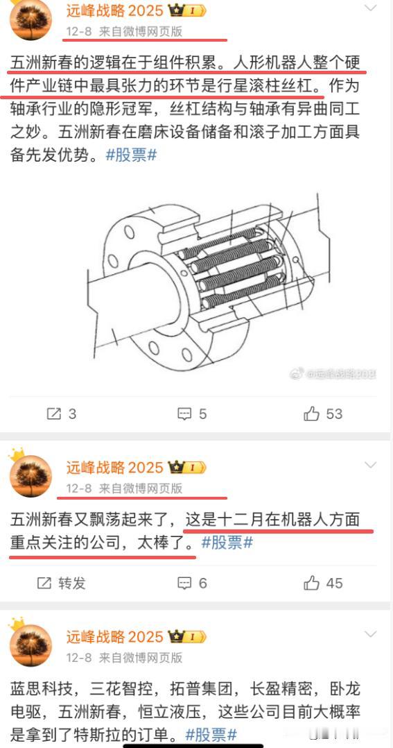 五洲新春及斯菱智驱(斯菱股份)双双创出历史新高。这是十二月份初在人形机器人方向重点看好的公司,人形机器人整个硬件产业链中最具张力的环节是行星滚柱丝杠。作为轴承行业的隐形冠军,丝杠结构与轴承有异曲同工之妙,而今双双奔赴新高,不负我月初的期待。 灵巧手占整机成本的17%左右,这是什么概念?如果以后机器人卖15万人民币,那两只手就值2.5万,以前手指弯曲靠蜗轮蜗杆,效率低,现在改成了微型丝杠。 所有的东西都在不断地改变,连机器人的发展路径其实也一直在改变,一直在迭代,学无止境啊。
