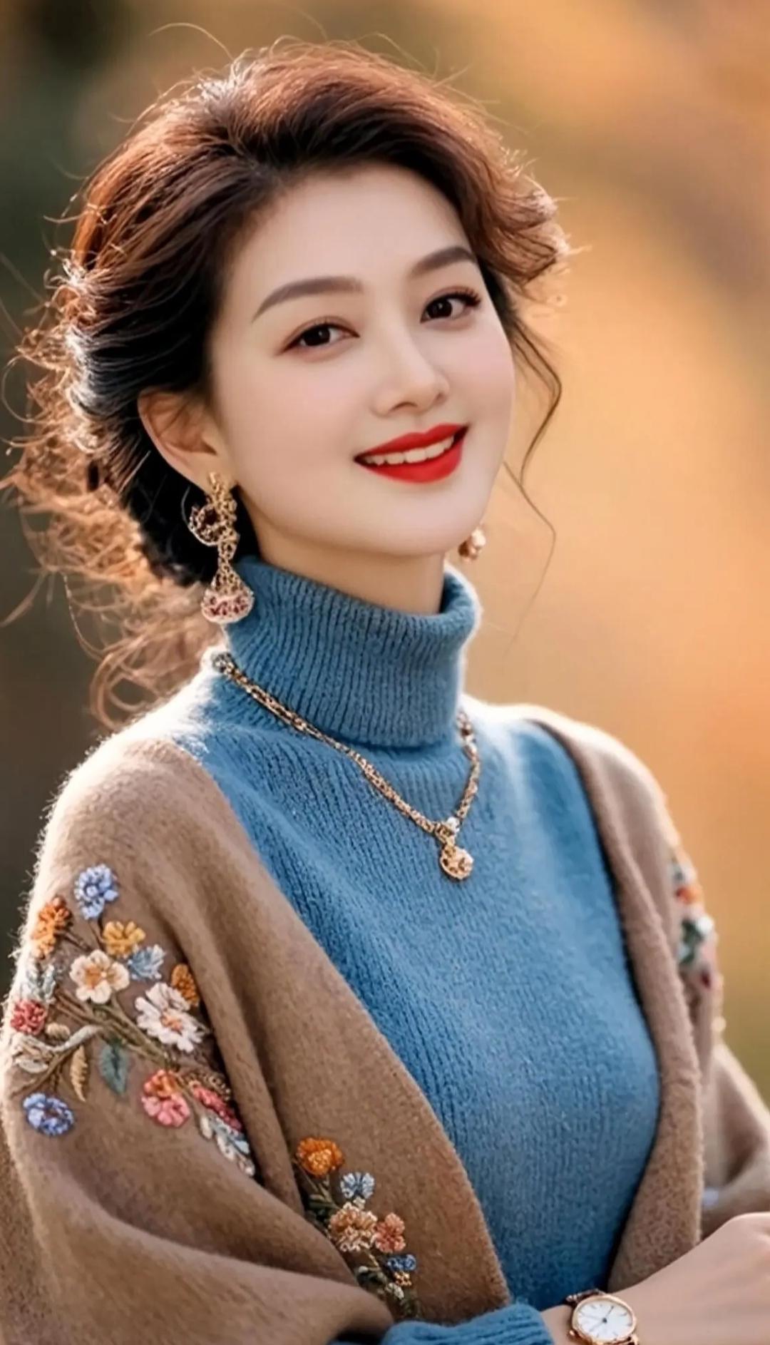 优雅古风美人,蓝衣玉佩,红唇轻启,韵味十足。高雅气质美女 高清美女