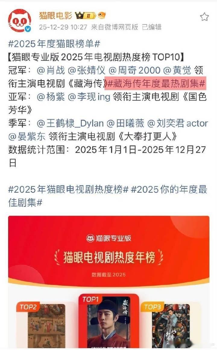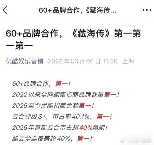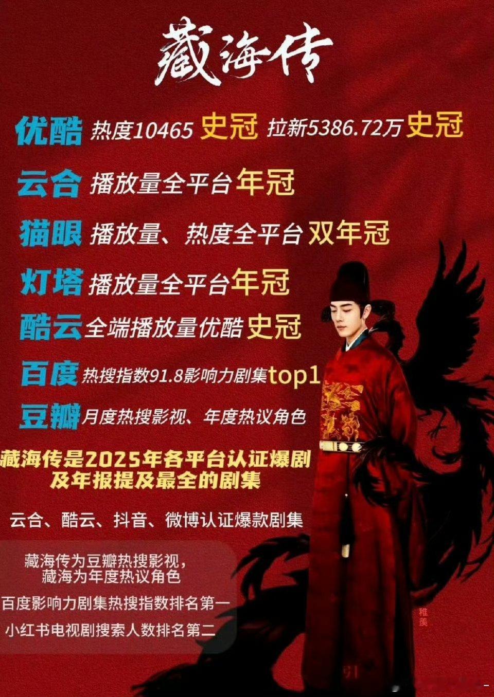 优酷2025夯爆了只知道肖战的《藏海传》不仅是拉新史冠 还是热度史冠 招商金额第一 拿下了2025年灯塔/云合/猫眼总播放量年冠!!!是优酷唯一发过战报的