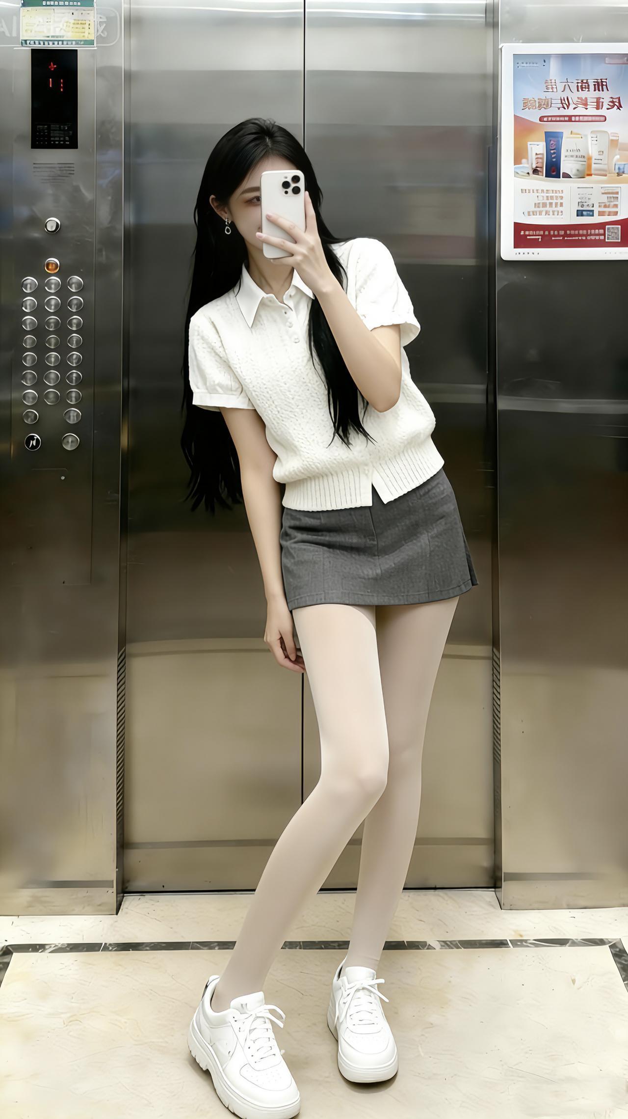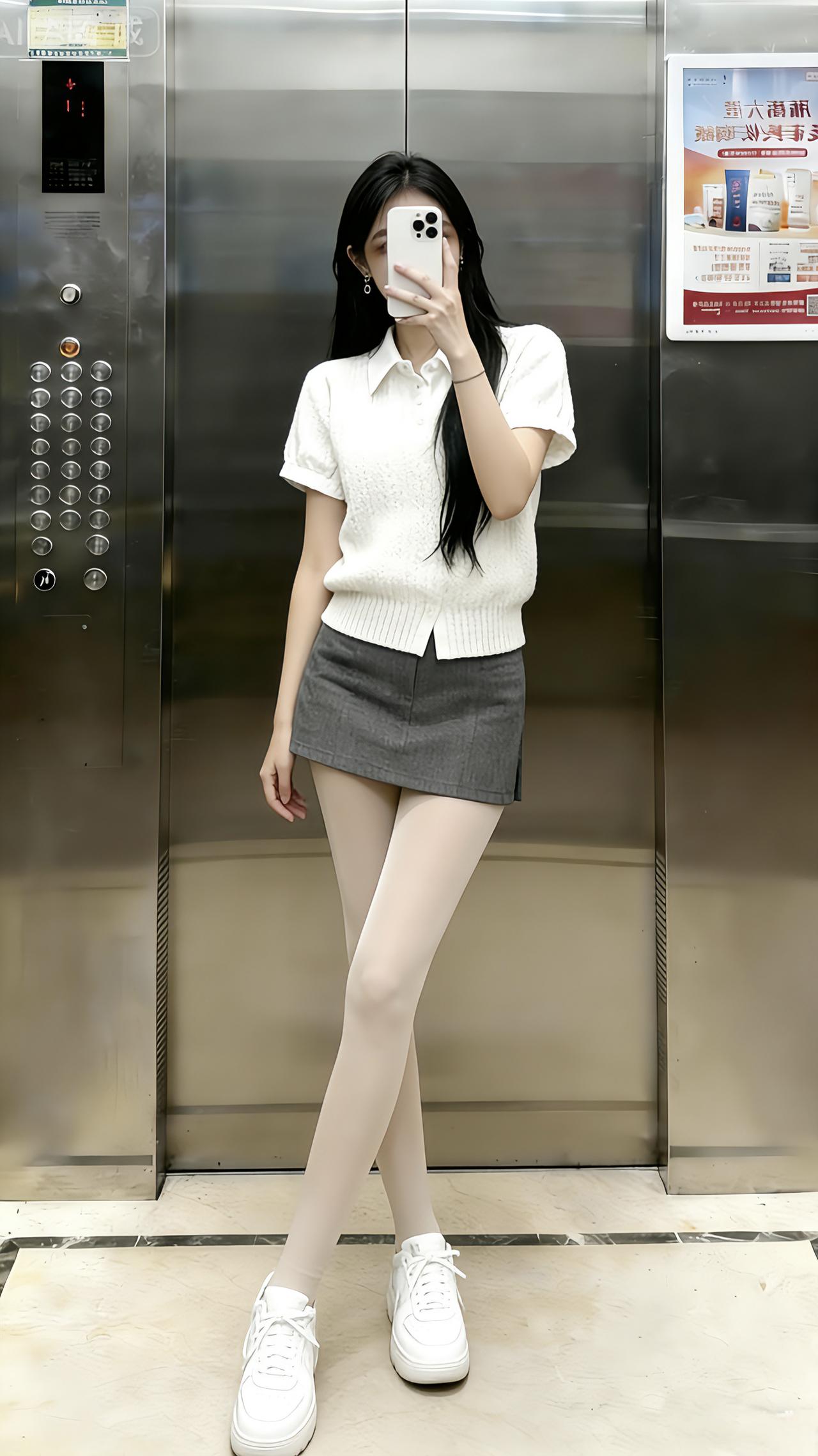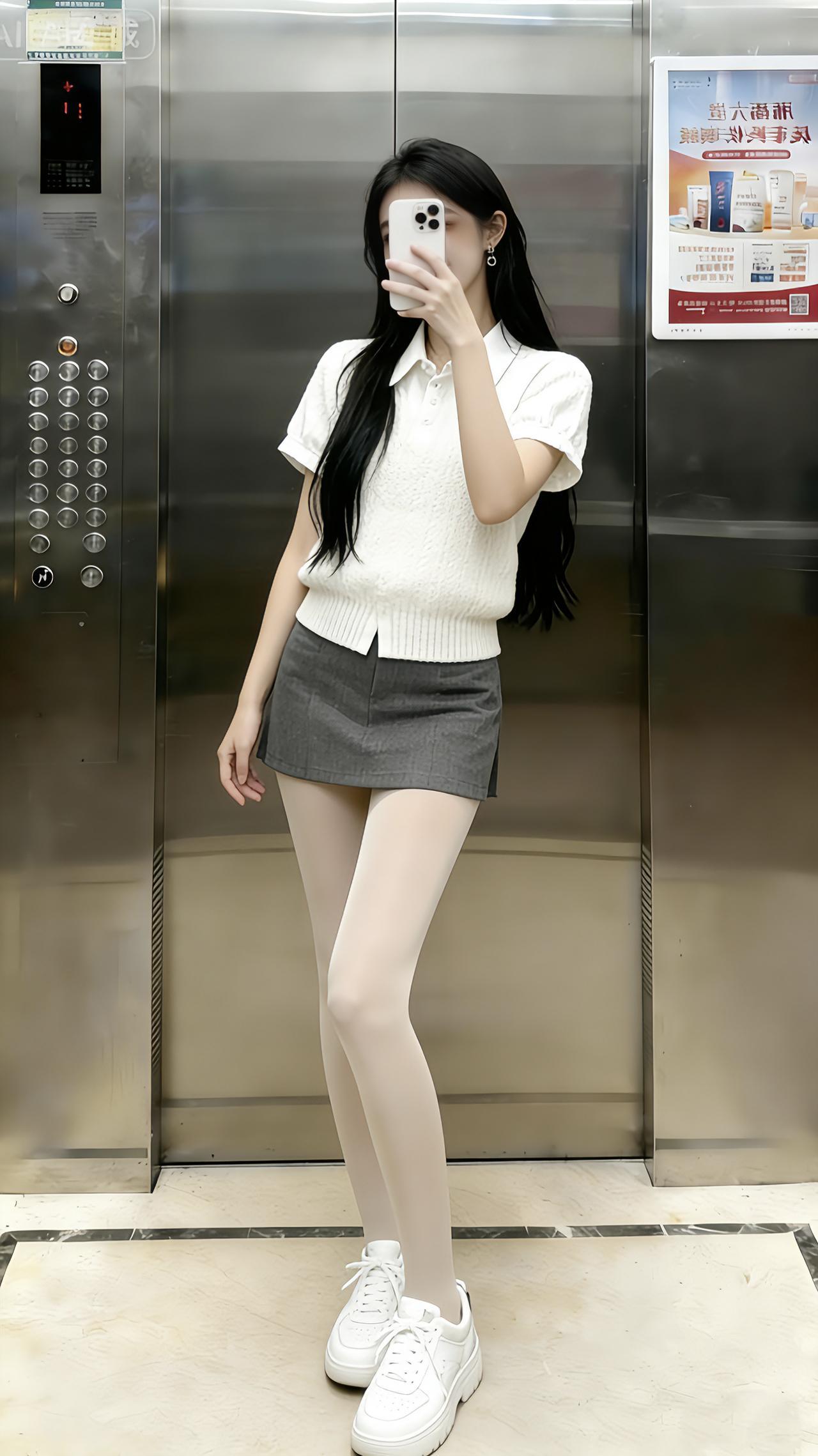 御姐电梯拍照大长腿日常穿搭分享是你的理想女朋友吗
