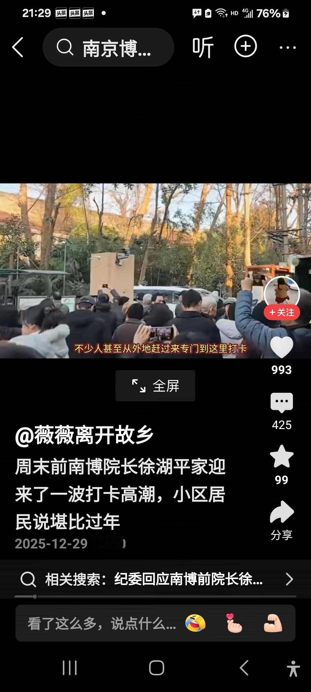 周末前,南博前院长徐湖平家迎来打卡高潮! 刚刚过去的周末,南京徐湖平住的别墅前人头攒动,人们争相观看徐院长家长啥样。不仅本地人前来打卡,就连有的外地人也不辞辛劳,前来打卡,门口一时十分拥堵,人满为患。旁边小区居民连连感叹,这个地方最近一下热闹起来了,堪比过年。 前来打卡的人,站在门口朝里面看,什么也没有看到。附近居民就指点他们,通过一条小道,钻过城墙地道,站在城墙上俯瞰别墅,院子里的景观可以尽收眼底。前来打卡的人们,尤其是外地人,为了不虚此行,按照附近居民的指点,登上了城墙,于是就有了图五和图六的图片。 有网友不无调侃地评论道,这些前来徐湖平家门口打卡的人们,正在为南京二博开馆预热。还有网友预测,徐湖平别墅将来会成为南京又一处打卡地。