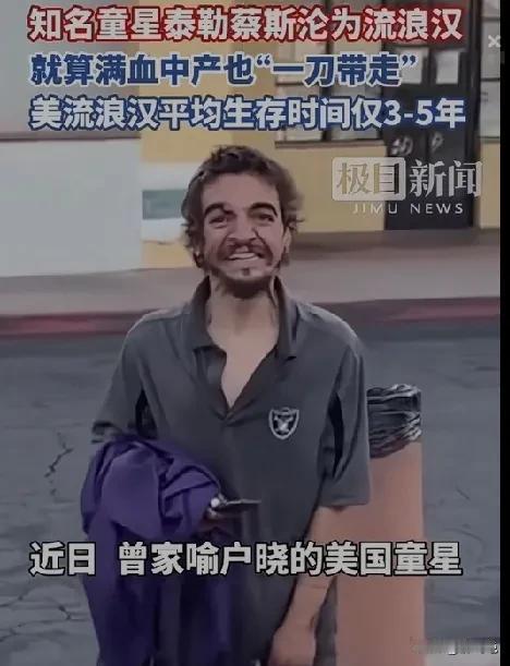 美国斩杀线真是势不可挡,这会连美国明星也难逃“斩杀线”。 最近美国家喻户晓的童星泰勒蔡斯也被爆出流落街头成为流浪汉。他的命运真的印证了美国存在一条从“中产阶级滑落到底层”的“斩杀线”。 泰勒.蔡斯出生于1989年,因出演校园喜剧《耐德的校园生存指南》而走红,成为一代观众的“童年回忆”。 不过在之后泰勒的演艺生涯并没有多大延续,只是客串过一些剧集,后来逐渐淡出演艺圈。 就在今年12月份,有人在洛杉矶街头拍到36岁的泰勒流落街头,沦为流浪人员。 从泰勒的状态可以看出,他的情形并不好,明显已经处于无家可归的境况,所以这则消息爆出来之后,引发舆论震惊。 这位昔日给无数观众带来欢乐的泰勒,也因为一些原因而被这条“斩杀线”“斩落街头”沦为流浪汉,不得不说真是太可惜了,不过据说目前有好友试图给予救助。 根据美国相关数据可以查到,在美国的流浪汉的平均生存时间为3到5年。 所以,可以想象那些普通民众一旦沦为流浪汉的结局可想而知。
