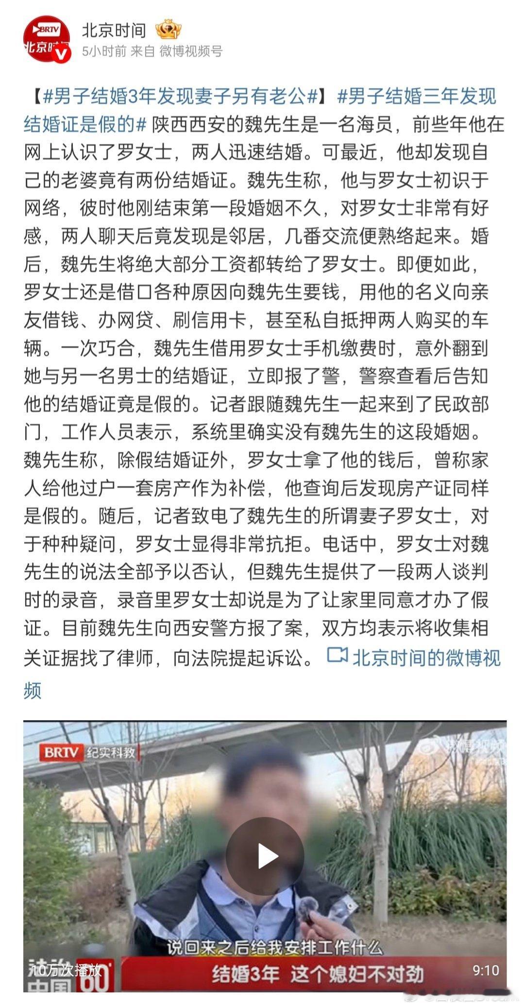 男子结婚3年发现妻子另有老公🔻海员老哥太惨了,辛苦赚的钱被邻居骗了。