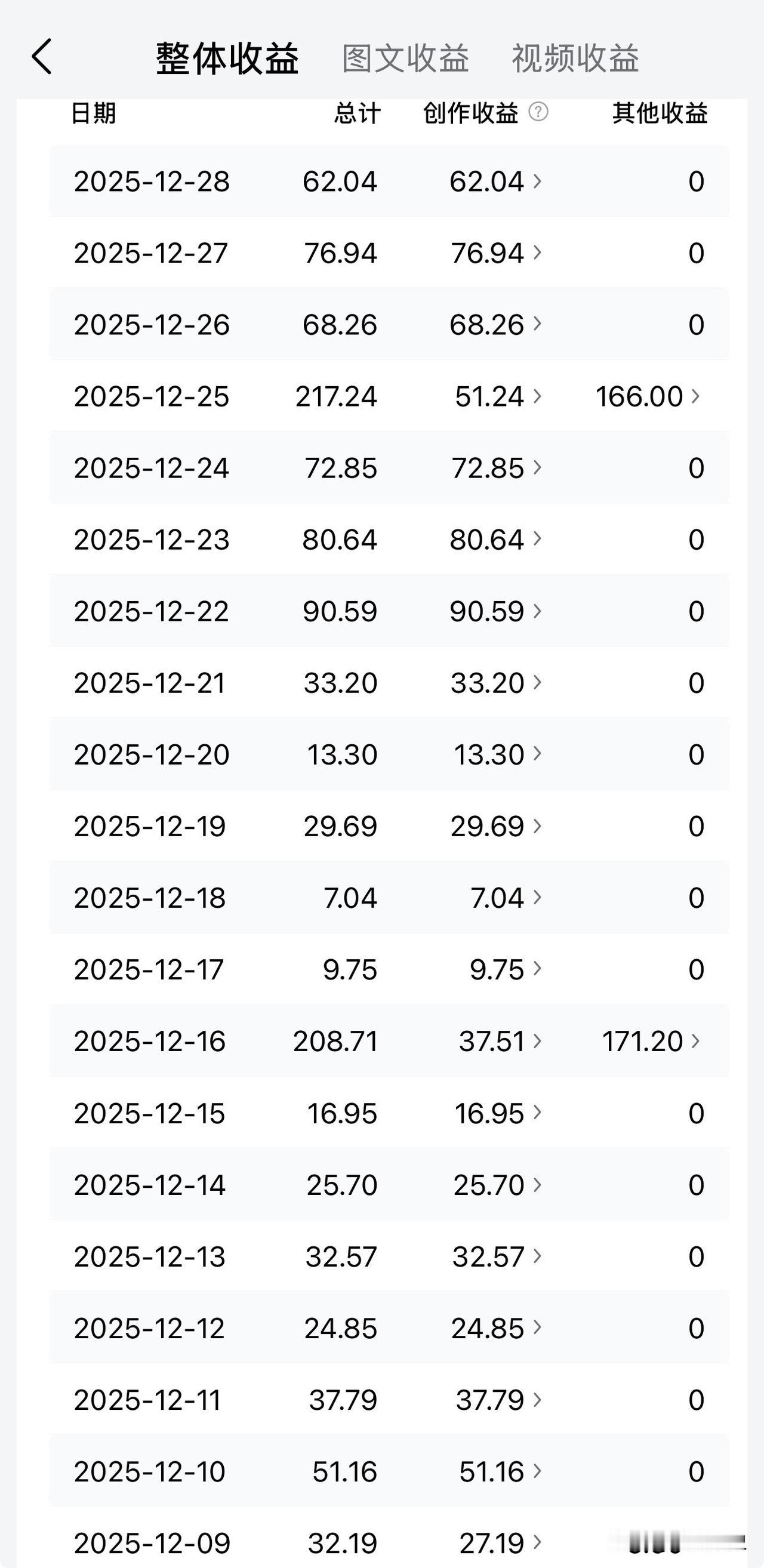 睡前晒一波写作收益 自从今日头条收益改版之后,好多人都放弃写作了。之前和我一起写作、交流的朋友,如今大多都不坚持了,都说现在头条的收益太低了! 其实我感觉还可以。现在的头条写作,对内容质量的要求明显提高了。以前不少人随便发张图片,甚至只打两三个字,只要能蹭到推流,就能有不错的收益。但现在发微头条格外看重原创性,还有明确的字数要求——不少于100字才能声明首发,进而拿到双倍收益。这其实在无形中保护了真心创作的人,也淘汰了一批靠刷量薅收益的账号,对真正热爱写作的人来说,何尝不是一种保护! 而且我还是那句话,付出就会有收获。眼下整体市场行情都不算好,能靠写作赚点零花钱,已经很知足了。关键是经常写作的话,自己的知识储备也会在无形中得到提升,这才是个人最大的进步。 你们说是不是这个理儿?