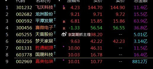 今天最高潮的不是航天,是被监管的个股,所以卡异动都没多大意思了,还是明天再看吧,晚上飞沃科技与龙洲股份会不会延长监管?如果也延长监管,明天飞沃与超捷的反馈也很重要。还有高位的天普股份,梦天家居,胜通能源,国晟科技这些都有点狂,防止JG升级。。尤其是国晟科技,装都不装了,别人延续监管还大跌一天,他到好周五盘中拉出新高收盘跌4个点今天干脆直接拉板,怕是最快的监管修复股了,今天9个监管股高潮了,除了AI的赛微弱鸡,其余的全部大涨,现在接近6个涨停,另外三个差点的飞沃也有4个点,平潭6个点,赛微跌1个点,确实丢人得这么出彩。。