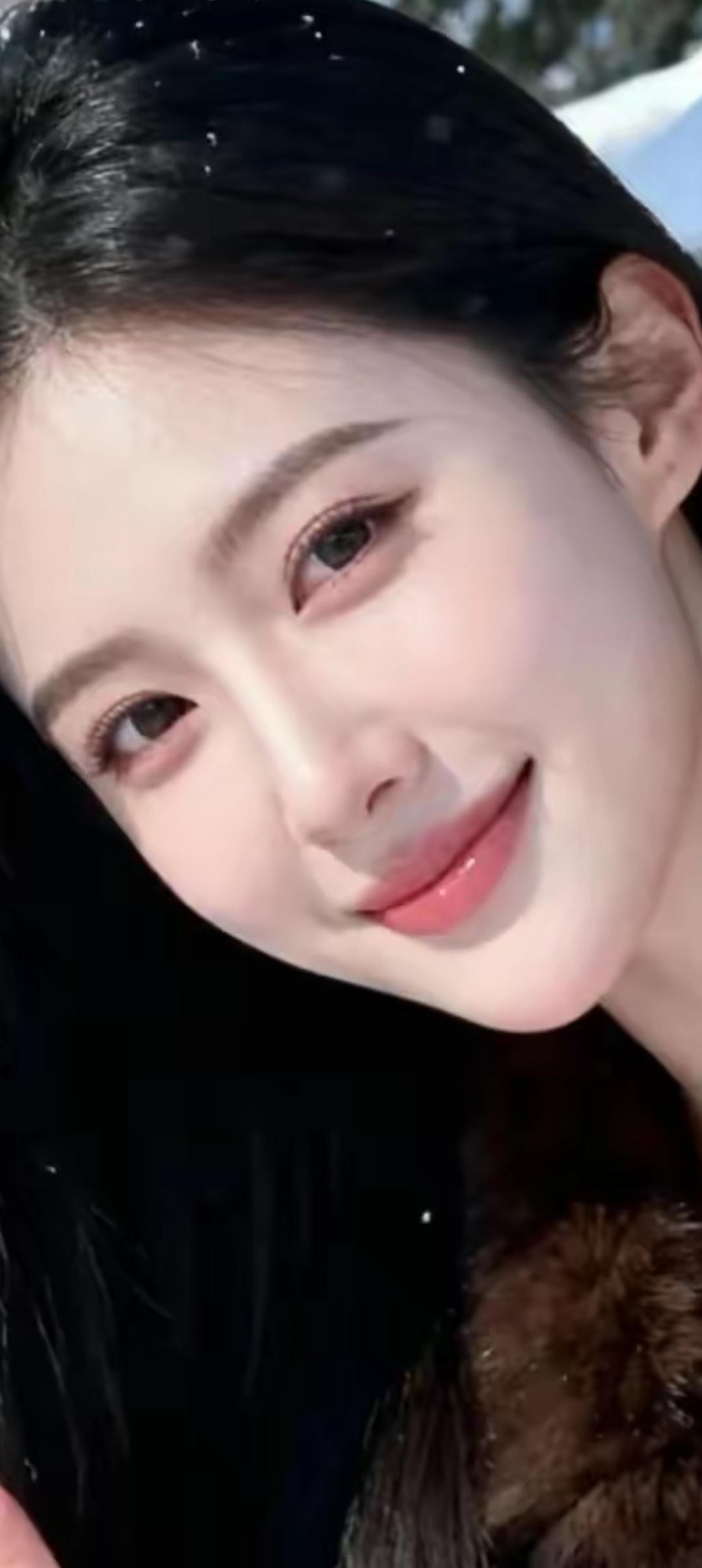 冬日暖阳下的甜美笑容,雪花飘落如梦似幻。