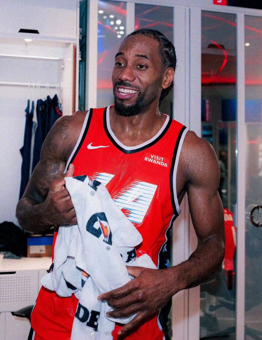 伦纳德在更衣室被浇水庆祝,完事后表示:“我会给你们所有人寄送账单。你们得让我去